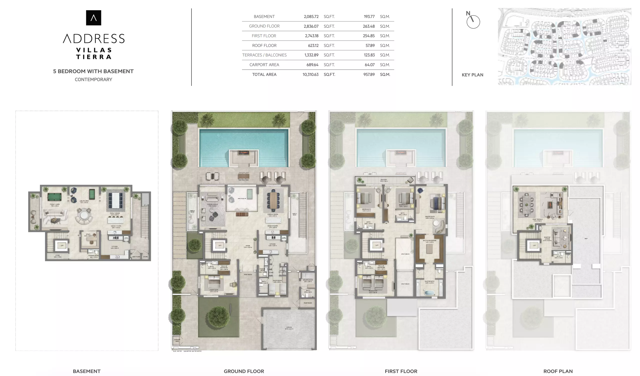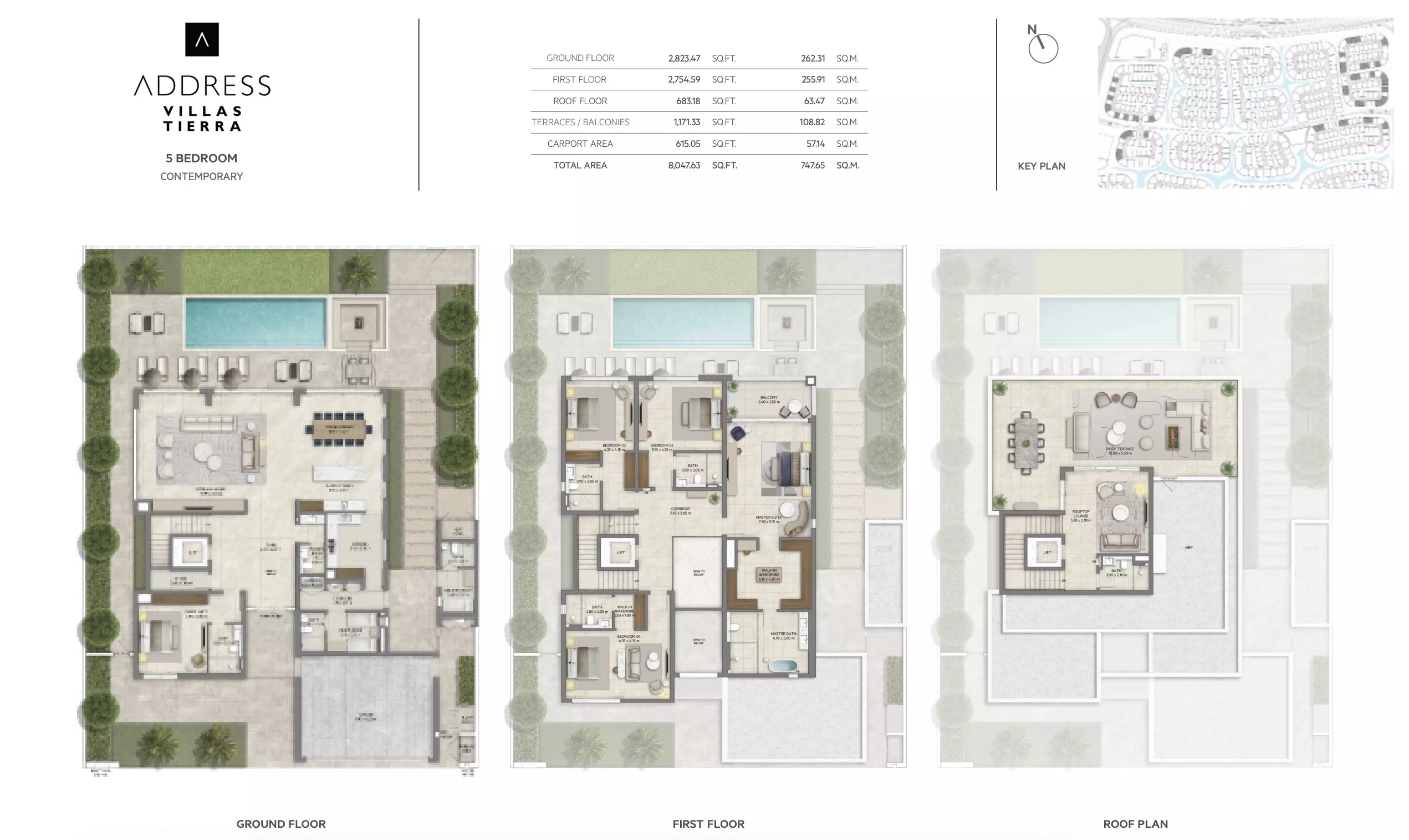 Address Villas Tierra offers luxurious villa options with varying sizes and prices: • 4-Bedroom Villas: Ranging from 7,268 to 7,301 sqft, with prices starting at 13M AED. • 5-Bedroom Villas: Ranging from 7,922 to 10,394 sqft, with prices starting at 14M AED. • 6-Bedroom Villas: Ranging from 12,777 to 12,958 sqft, with prices starting at 24M AED. These villas provide spacious living with high-end finishes, ideal for those seeking a premium, waterfront lifestyle within Dubai’s prestigious The Oasis development by Emaar.