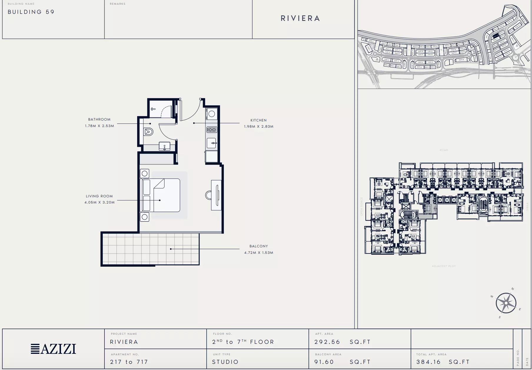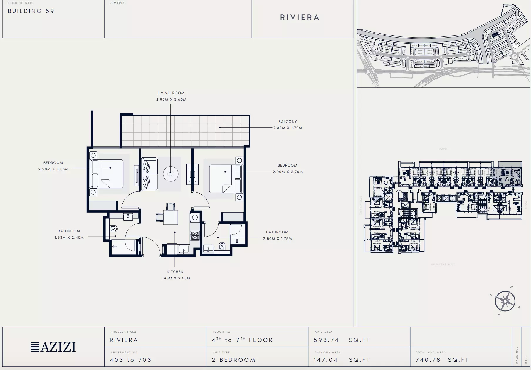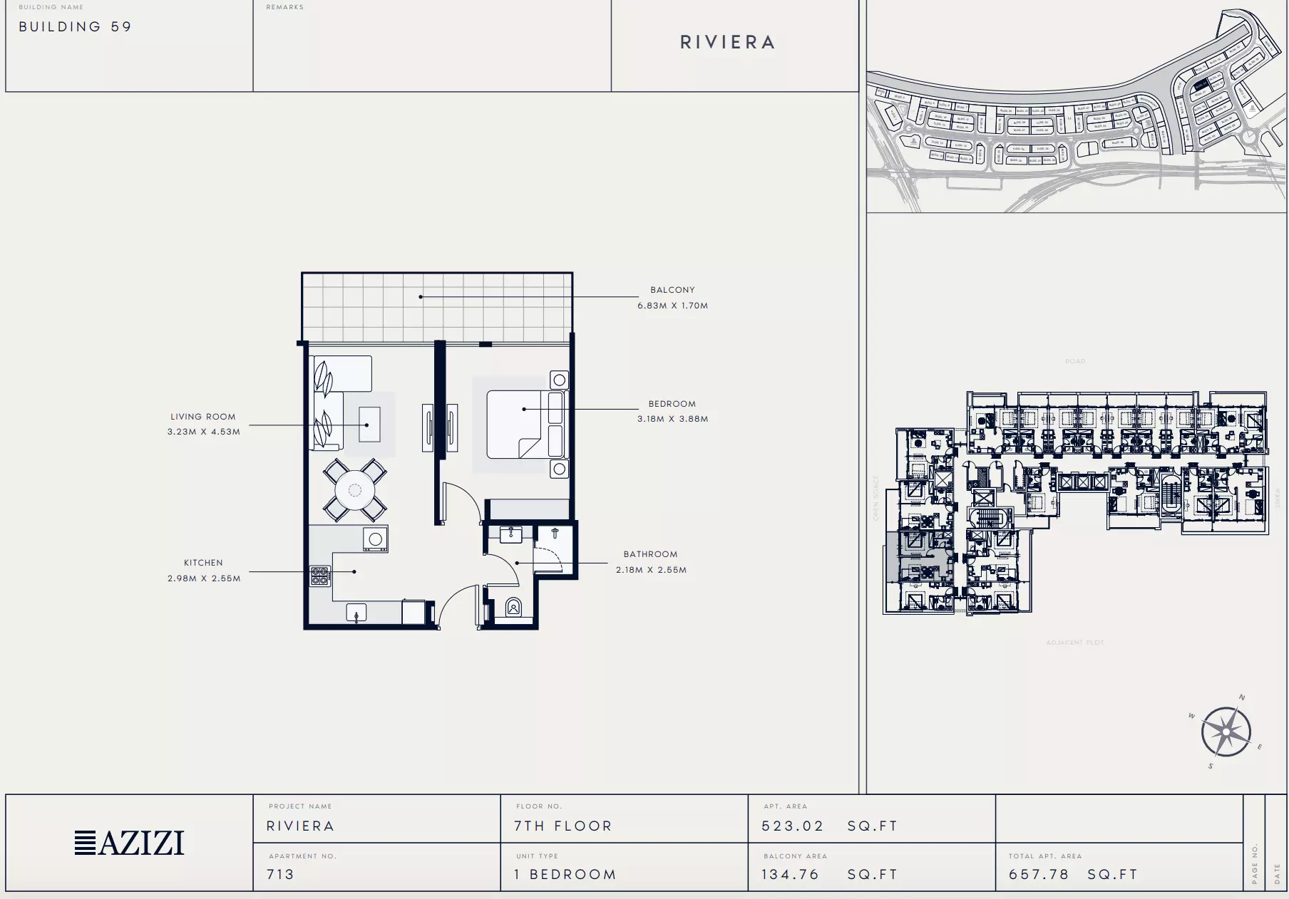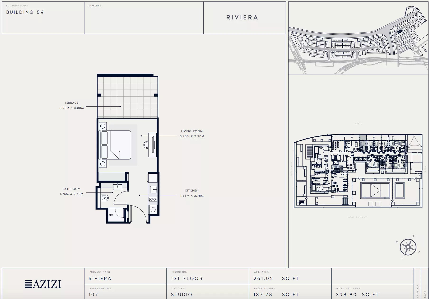 Azizi Riviera 59 presents an excellent investment opportunity due to its prime location in Meydan, close to key attractions like Meydan One Mall and Downtown Dubai. The development offers high-quality living, a strong community, and proximity to major roads, ensuring both short- and long-term rental potential.