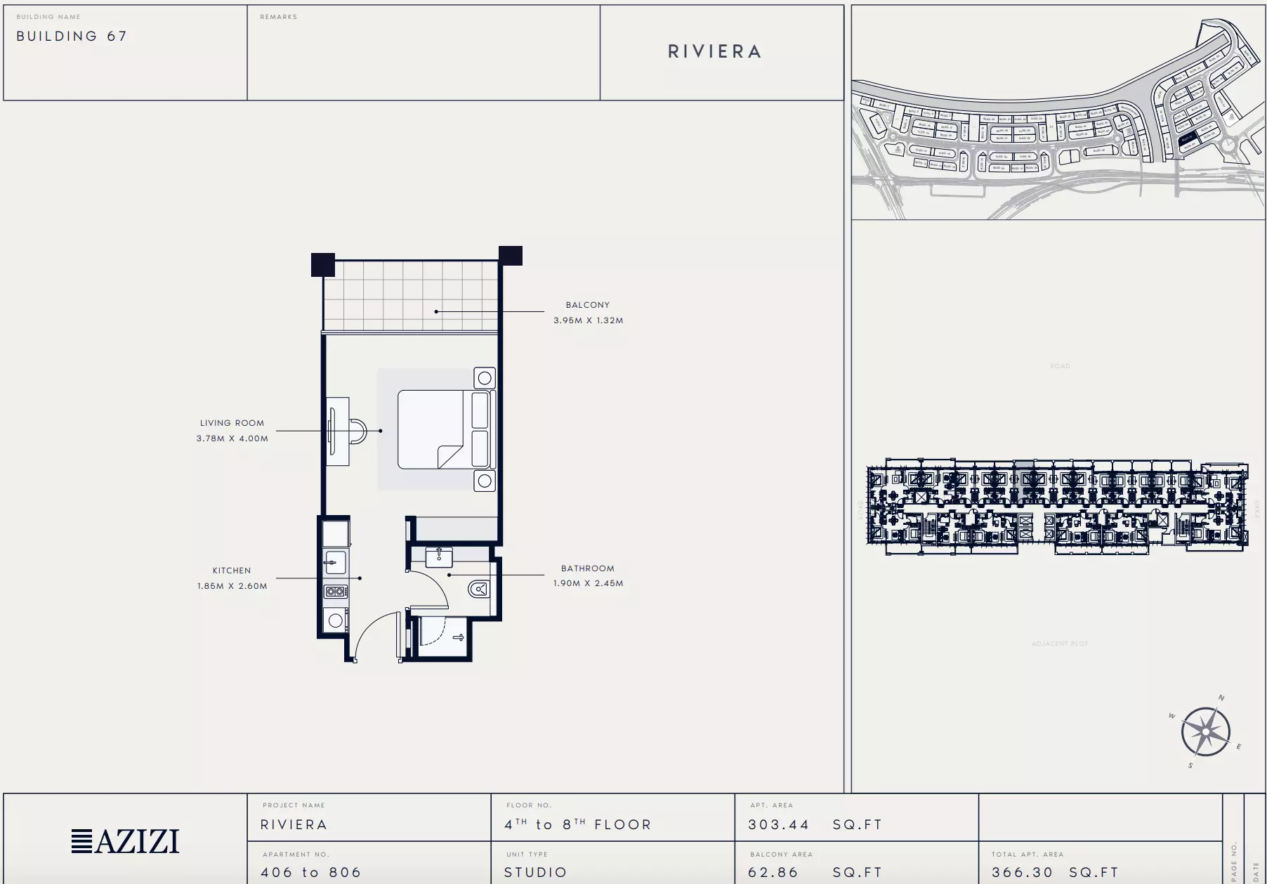 • Apartments in studios:Size range: around 400–500 square feet,Starting cost: 1,134,000 AED, Features include a small living space, bathroom, kitchenette, and sometimes a balcony.