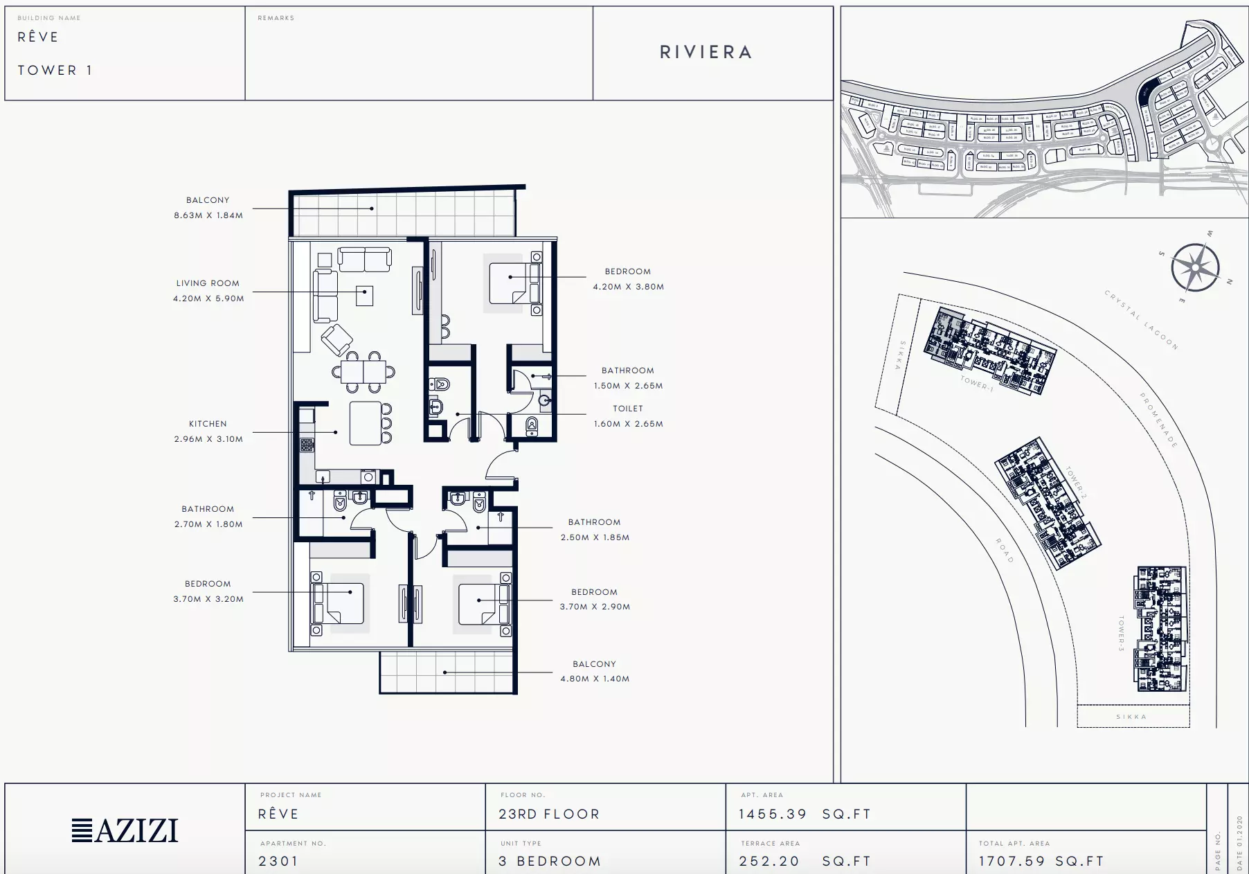 Azizi Riviera Reve is developed by Azizi Developments, a leading real estate developer known for creating luxury residences with lasting value and high standards in design and construction.