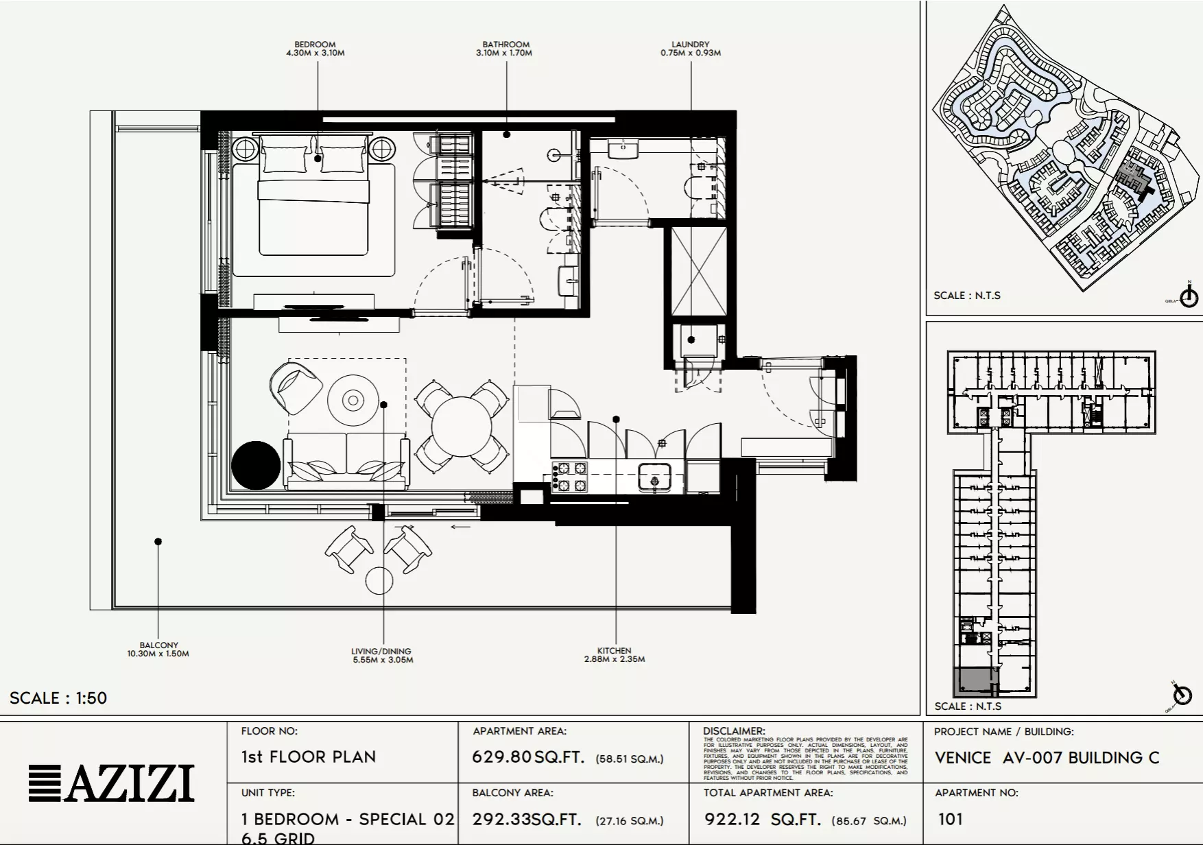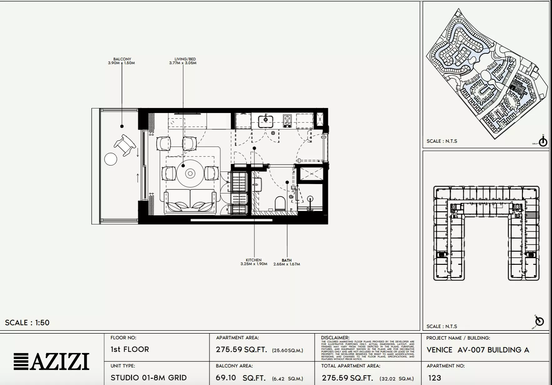 Azizi Venice 7 is an attractive investment opportunity, offering a unique blend of luxury, comfort, and practicality. Located in the rapidly developing Dubai South, it boasts excellent connectivity with proximity to key transportation hubs like Al Maktoum International Airport and Jebel Ali Port, making it ideal for both residents and businesses. The project’s elegant design and high-end finishes appeal to investors seeking premium properties at competitive prices. The surrounding area’s ongoing development, including leisure attractions and shopping centers, ensures a vibrant, community-focused lifestyle, adding to the project's potential for long-term growth and rental demand.