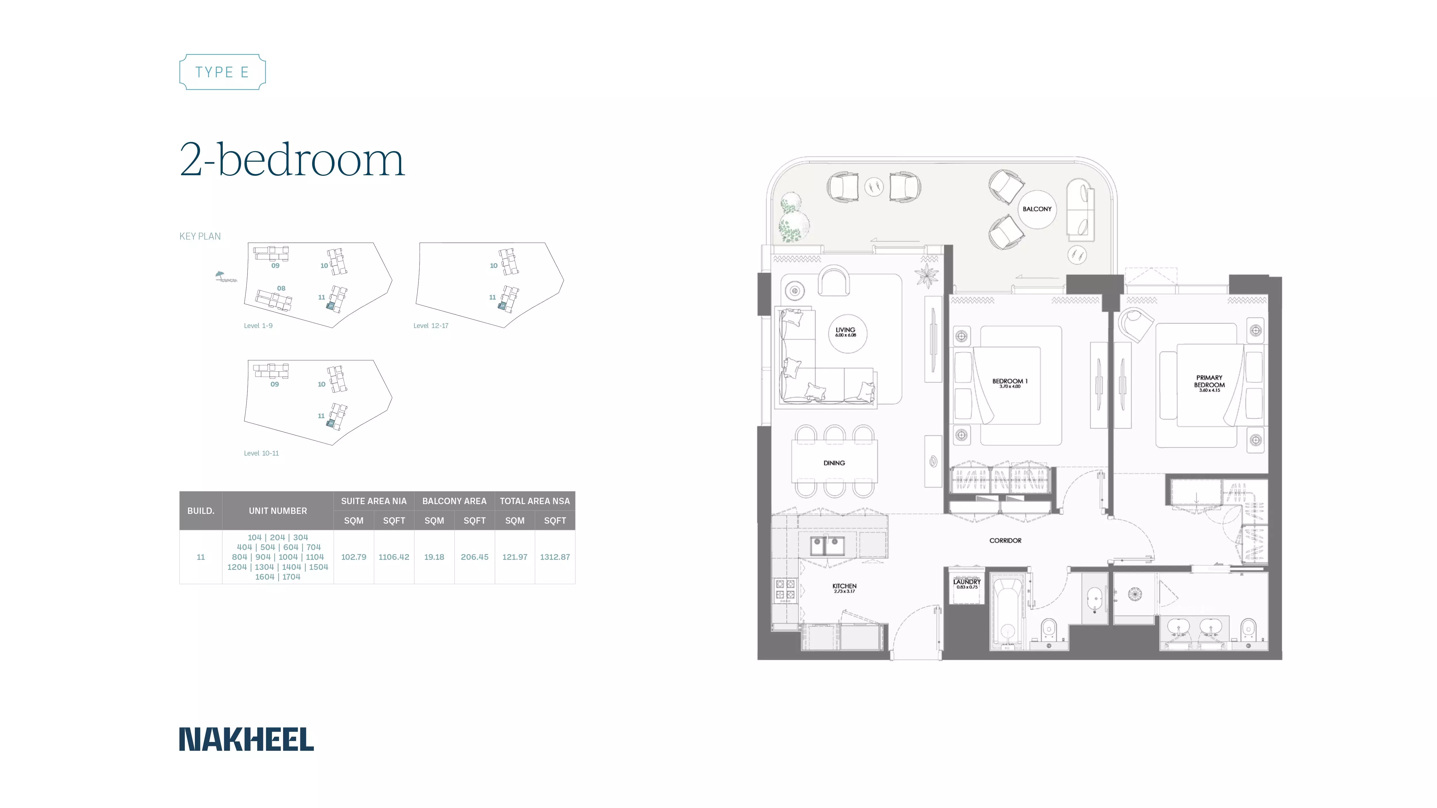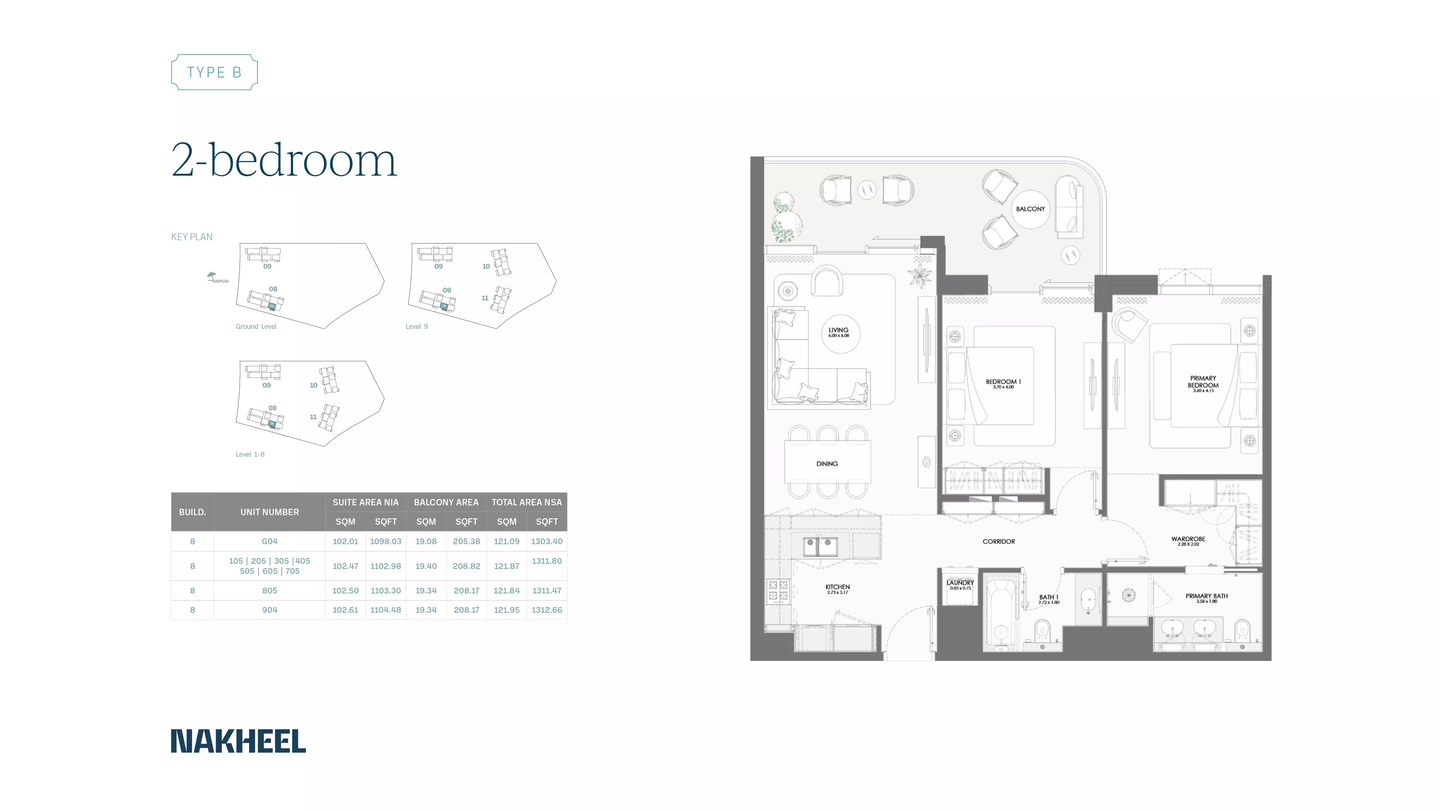 Bay Grove Residences Phase 2 by Nakheel offers a variety of spacious apartments with modern designs and premium finishes. The available housing options include: • 1 Bedroom apartments ranging from 865 to 971 sqft, starting at 1.9M AED. • 2 Bedroom apartments ranging from 1308 to 1617 sqft, starting at 2.7M AED. • 3 Bedroom apartments ranging from 2104 to 2108 sqft, starting at 4.4M AED. • 4 Bedroom apartments ranging from 3371 to 3382 sqft, starting at 8.2M AED. These apartments are designed to cater to various family sizes and offer a luxurious living experience with stunning views and premium amenities.