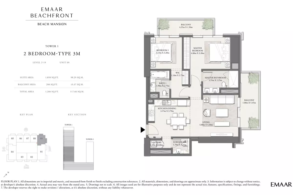 | Tower 1 Type 3M, Level 2-19, unit 09 | 1,266.00 | View |