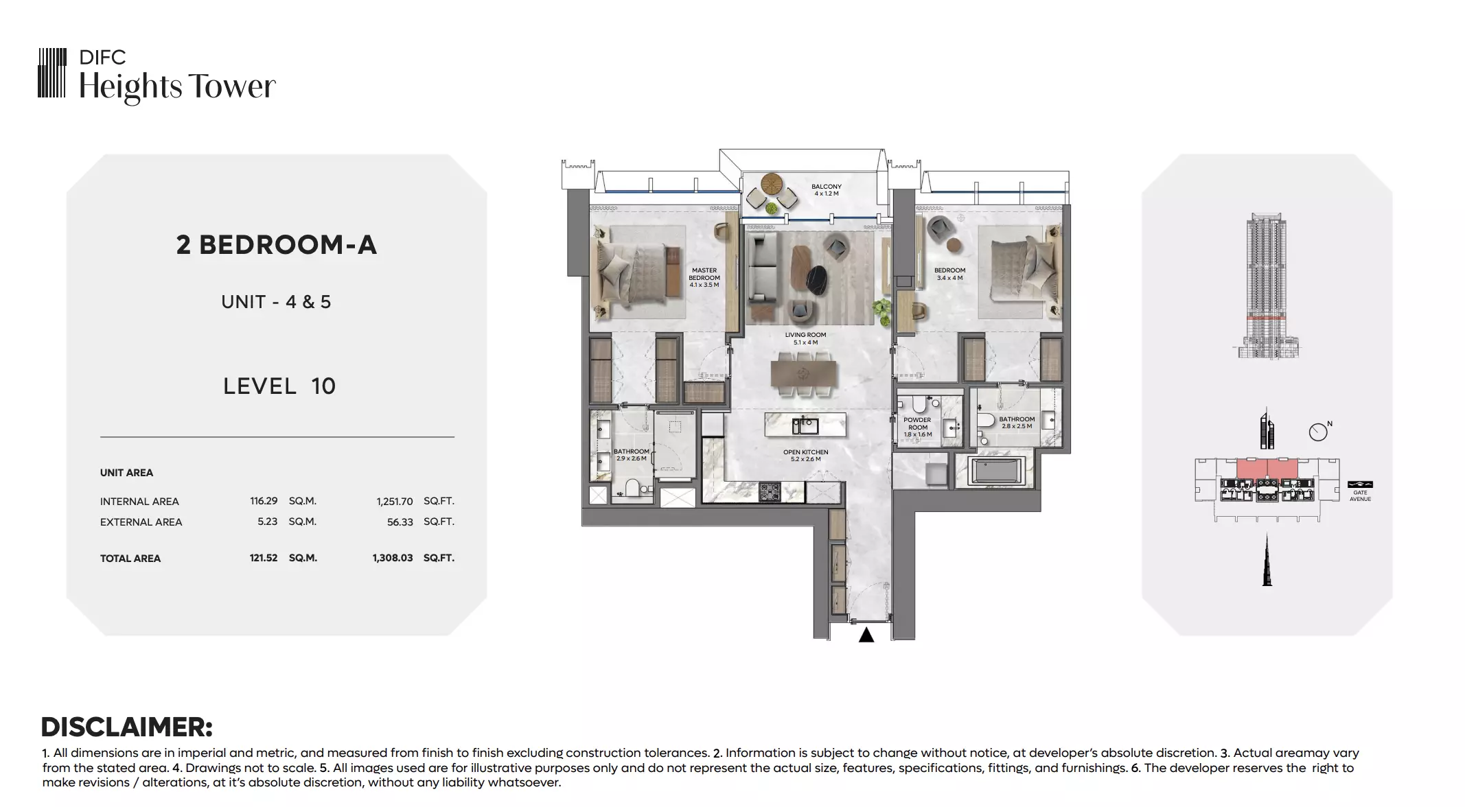 DIFC Heights Tower offers a variety of housing options, including both apartments and duplexes. The available unit types and sizes are as follows: • 1 Bedroom Apartments: Ranging from 792 to 871 sqft • 2 Bedroom Apartments: Ranging from 1,307 to 1,438 sqft • 3 Bedroom Apartments: 1,760 sqft For those seeking more expansive living spaces, the tower also offers duplex units: • 3 Bedroom Duplex: 2,852 sqft • 4 Bedroom Duplex: Ranging from 3,519 to 3,618 sqft While the specific prices are not mentioned, these units provide a wide range of options catering to both individuals and larger families, offering luxurious living in the heart of Dubai.