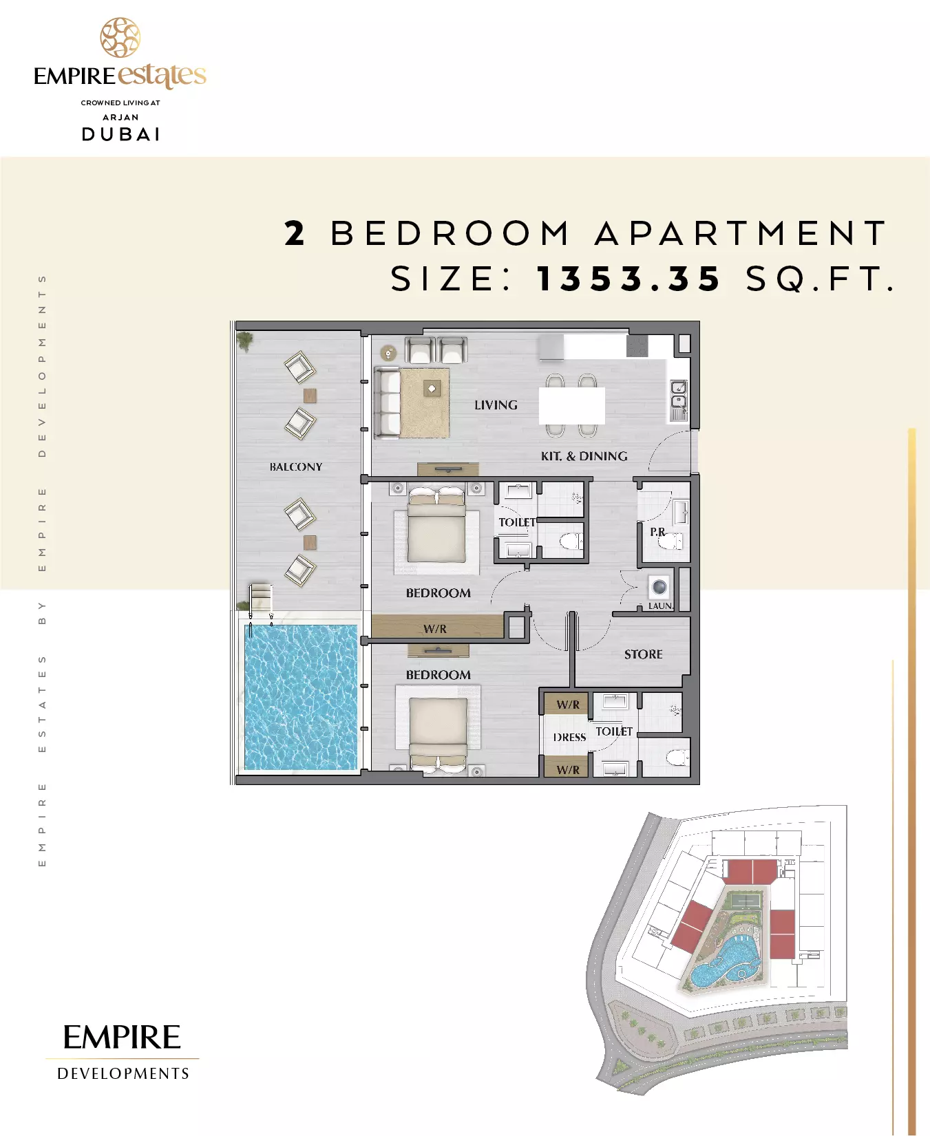 Empire Estates in Arjan offers a prime investment opportunity, combining luxury living with a strategic location. Situated close to iconic Dubai attractions like the Mall of the Emirates and Dubai Miracle Garden, residents benefit from easy access to shopping, dining, and entertainment. The community is designed for convenience, with essential services such as schools and hospitals nearby. Its tranquil, family-friendly environment adds to its appeal, making it an ideal location for both residents and investors looking for sustained growth in Dubai's competitive real estate market.