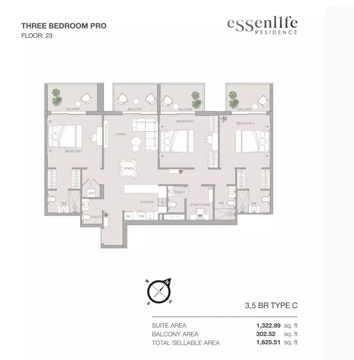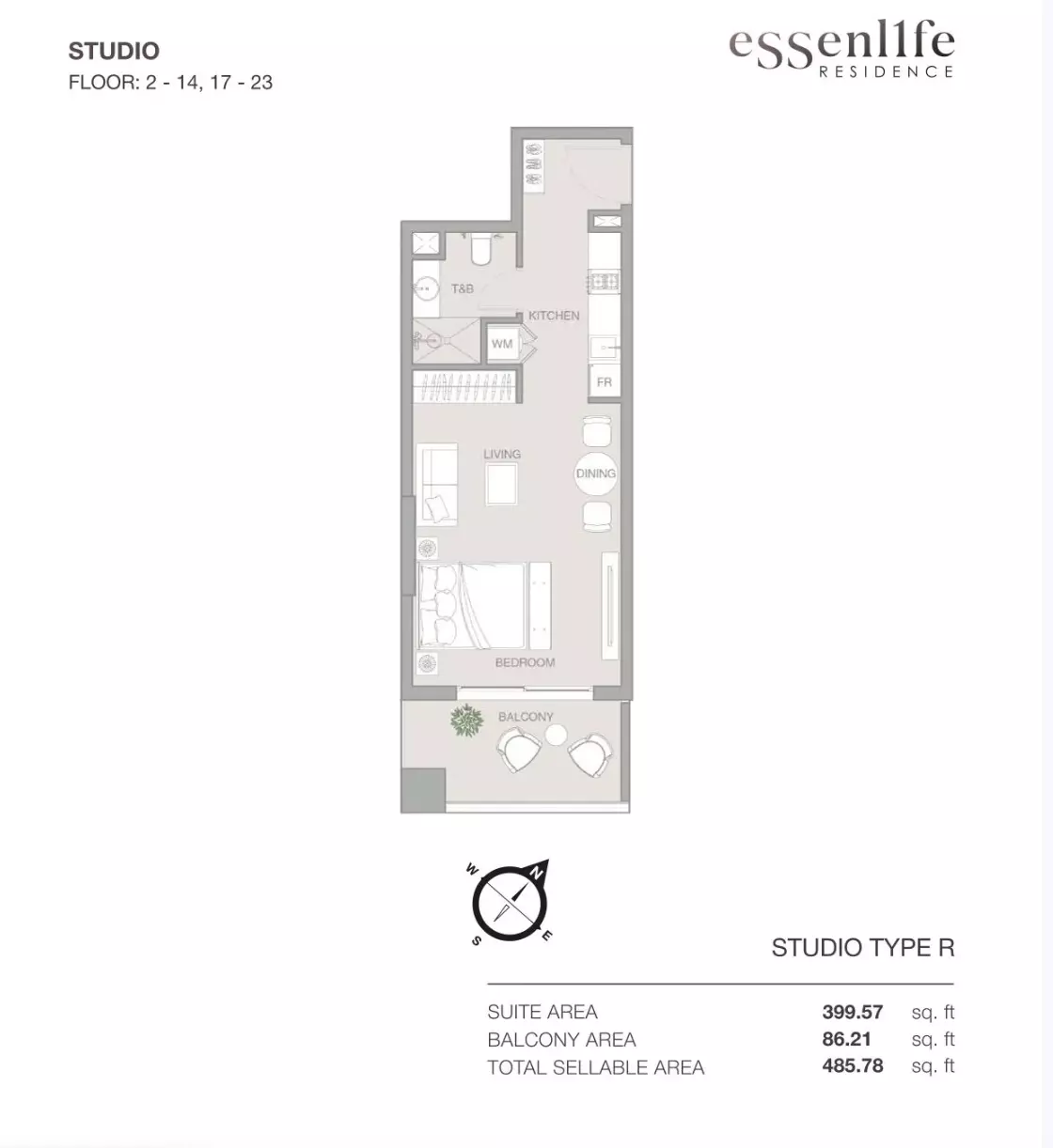 Essenlife offers a variety of thoughtfully designed apartments to suit different needs and lifestyles. The available unit types range from studio apartments to spacious four-bedroom homes. Studio apartments start at 752,000 AED and offer sizes between 435 to 488 sq ft, ideal for individuals or young professionals seeking efficient living spaces. One-bedroom units are priced from 1.2 million AED, with areas ranging from 793 to 1,540 sq ft, offering more room for comfort and functionality. Two-bedroom apartments are also available from 1.2 million AED, sized between 800 and 1,255 sq ft, suitable for small families or couples. Three-bedroom units are priced from 2 million AED and have a uniform size of 1,364 sq ft, providing balanced space and privacy. For larger households, four-bedroom apartments start at 2.3 million AED, with sizes ranging from 1,525 to 1,762 sq ft, offering ample space for family living. Each unit combines modern design with efficient layouts, catering to diverse buyer preferences.