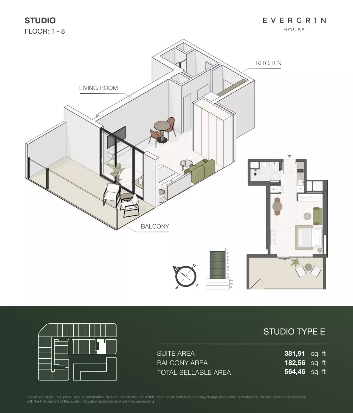 Evergr1n House offers a range of premium apartment options designed to cater to different needs and preferences. Housing options include studios, one-bedroom, and two-bedroom apartments. • Studio apartments are available with sizes ranging from 388 to 564 square feet, starting at 1 million AED. • One-bedroom apartments offer more spacious living, with sizes between 767 and 991 square feet, starting at 1.8 million AED. For larger households, • the two-bedroom apartments provide ample space, with sizes ranging from 1,137 to 1,138 square feet, starting at 2.6 million AED. These thoughtfully designed units combine functionality and style, creating ideal living spaces for modern residents.