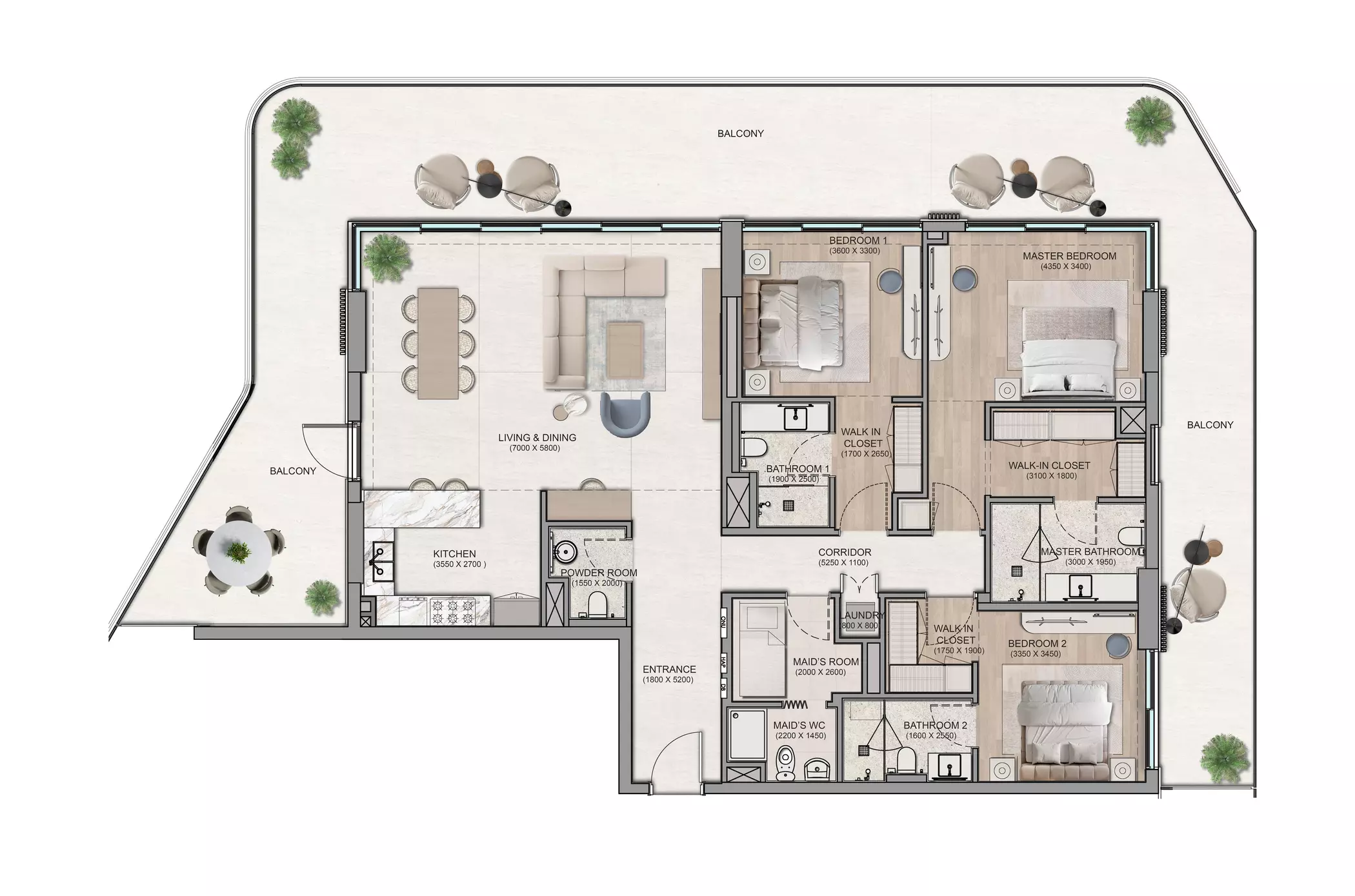 Flora Isle offers luxury apartment options with different sizes and prices: • 1-Bedroom: 813 sqft, starting from 2.1M AED • 2-Bedroom: 1324 sqft, starting from 3.1M AED • 3-Bedroom: 2443 sqft, starting from 6.3M AED These residences are designed to offer modern living in a prestigious location with a seamless blend of sophistication and tranquility.