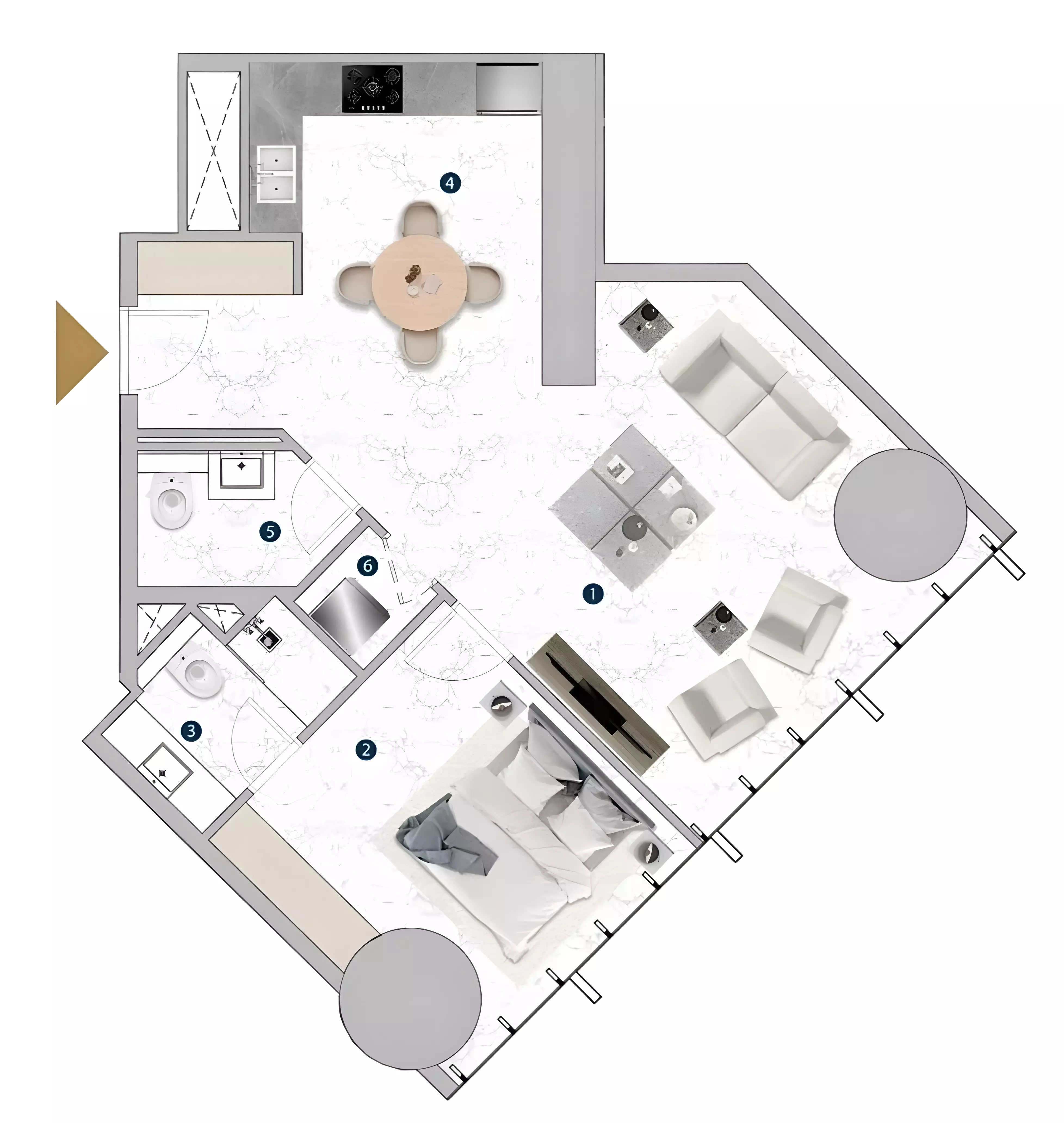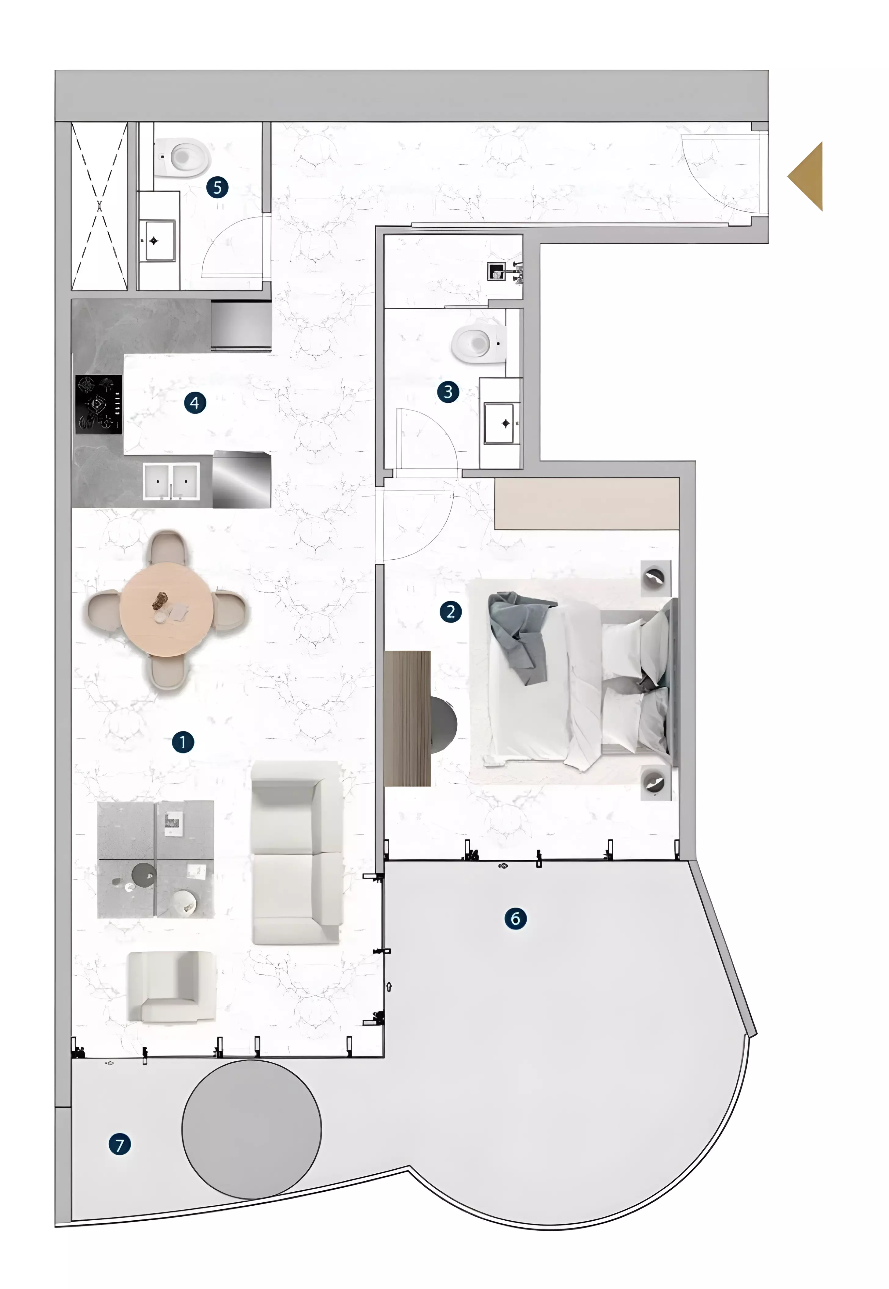 Franck Muller Yachting offers a diverse collection of apartments with layouts ranging from compact studios to expansive three-bedroom units. The studio apartments are priced from 1.2 million AED, with sizes ranging between 379 and 2,712 square feet, providing flexible options for different lifestyle needs. The one-bedroom residences start from 1.9 million AED and range in size from 758 to 1,182 square feet, offering a balance of space and functionality. For those seeking larger homes, the two-bedroom apartments are available from 2.5 million AED, with a fixed size of 950 square feet. The three-bedroom units extend to 1,803 square feet, delivering a spacious option for families.