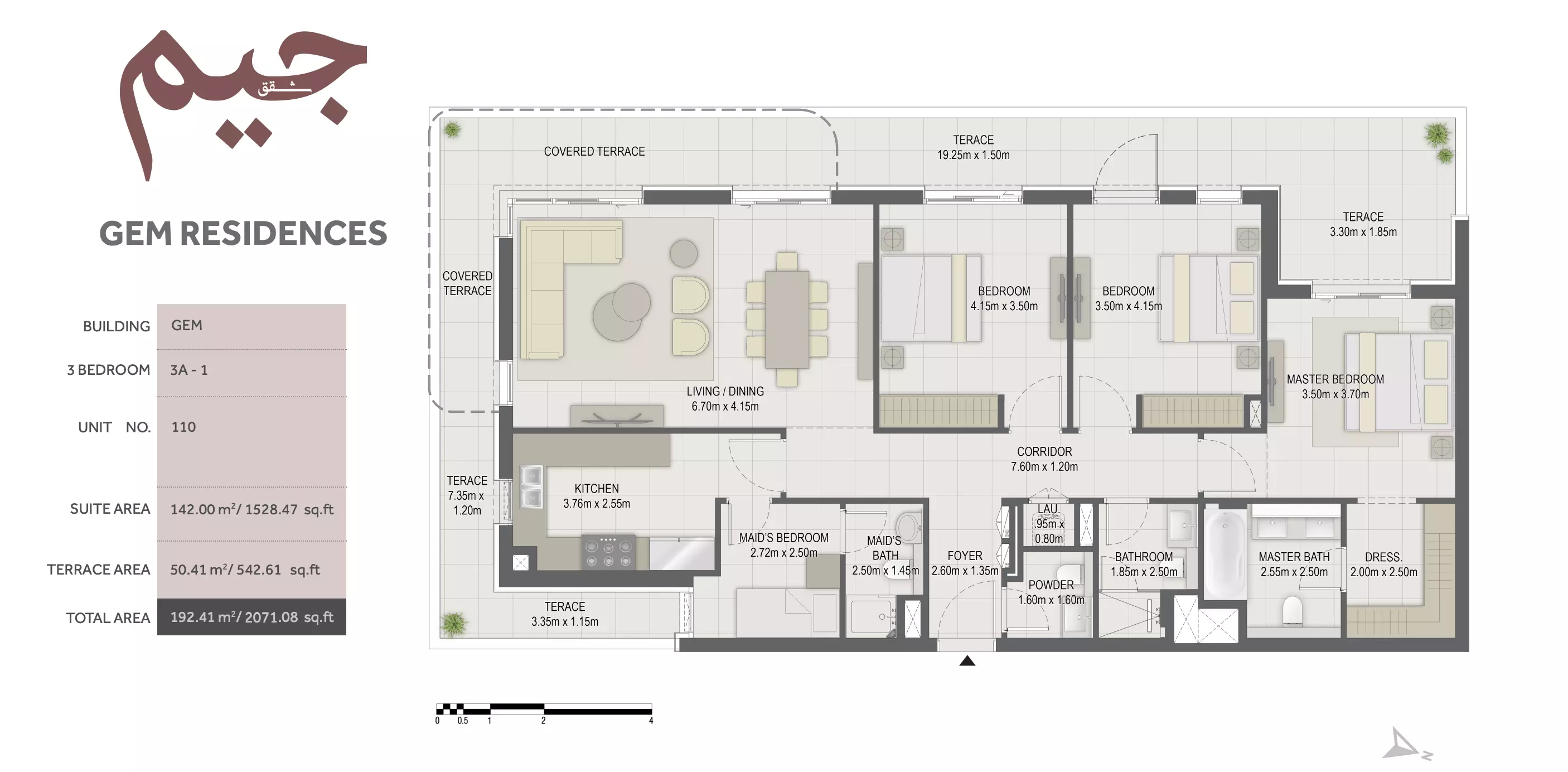 GEM Residences offers a variety of housing options suitable for different lifestyles. The available unit types include: • 1-Bedroom Apartments: Ranging from 781 to 811 sqft, with prices starting from AED 879,000. • 2-Bedroom Apartments: Ranging from 1,099 to 1,315 sqft, starting at AED 1.5 million. • 3-Bedroom Apartments: Sizes range from 1,759 to 2,071 sqft, with prices beginning at AED 2.6 million. • 4-Bedroom Apartments: Offering spaces from 2,151 to 3,171 sqft, inquire for price. • 4-Bedroom Penthouses: Spanning from 2,319 to 3,233 sqft, inquire for price. • 3-Bedroom Townhouses: Sizes from 2,402 to 2,792 sqft, inquire for price. • 4-Bedroom Townhouses: Offering 2,909 sqft, inquire for price. These diverse options cater to a range of preferences, with spacious layouts and luxurious finishes.