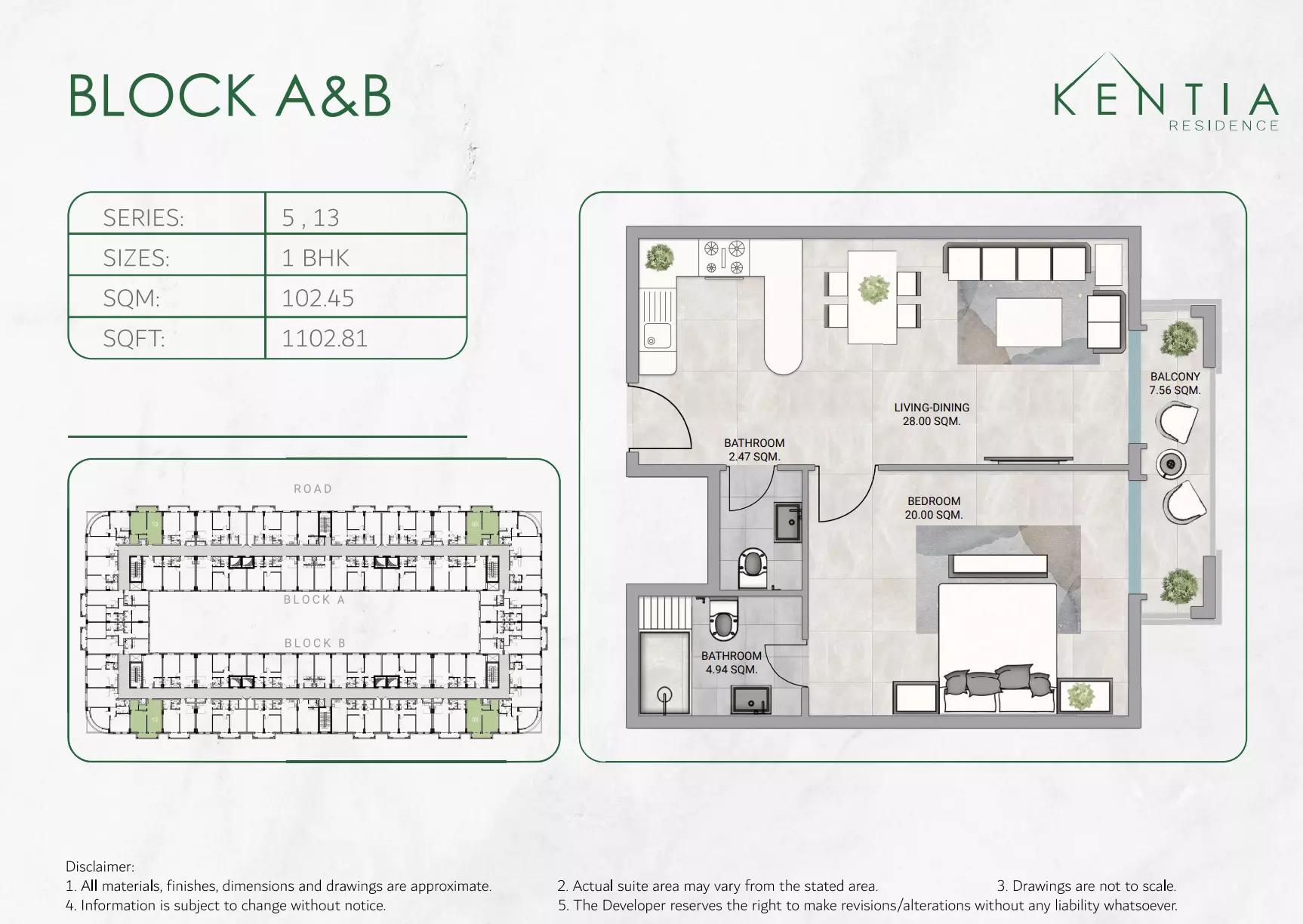 Kentia Residence offers a variety of unit types to cater to different preferences: Studios: Sizes range from 374 to 664 sqft, with prices starting at 172,000 AED. 1-Bedroom Apartments: Sizes range from 986 to 1,110 sqft, with prices starting at 418,000 AED. 2-Bedroom Apartments: Sizes range from 1,401 to 1,730 sqft, with prices starting at 605,000 AED.