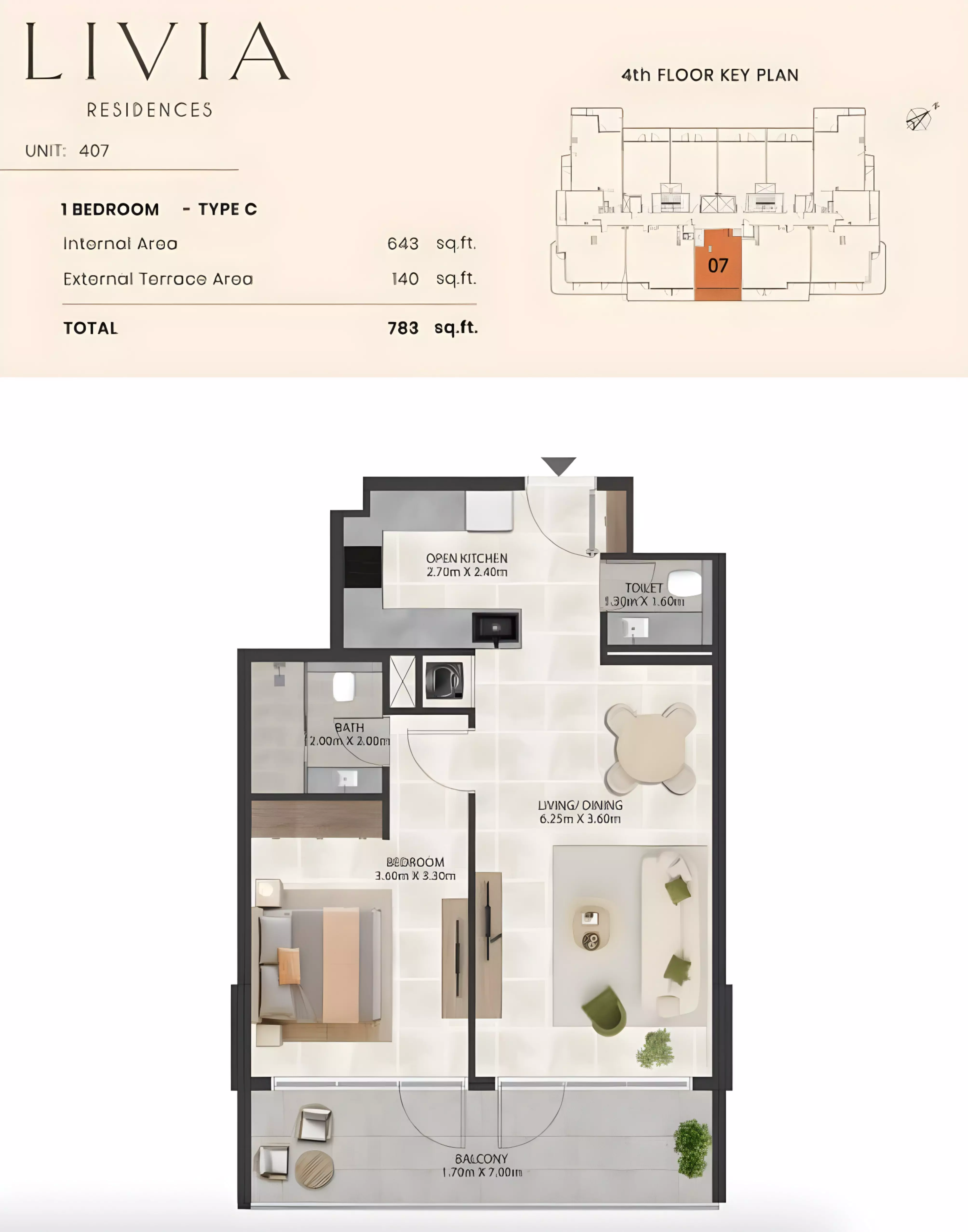 Livia Residence is a freehold property, giving buyers complete ownership rights and long-term security within the Dubai South (Dubai World Central) community.