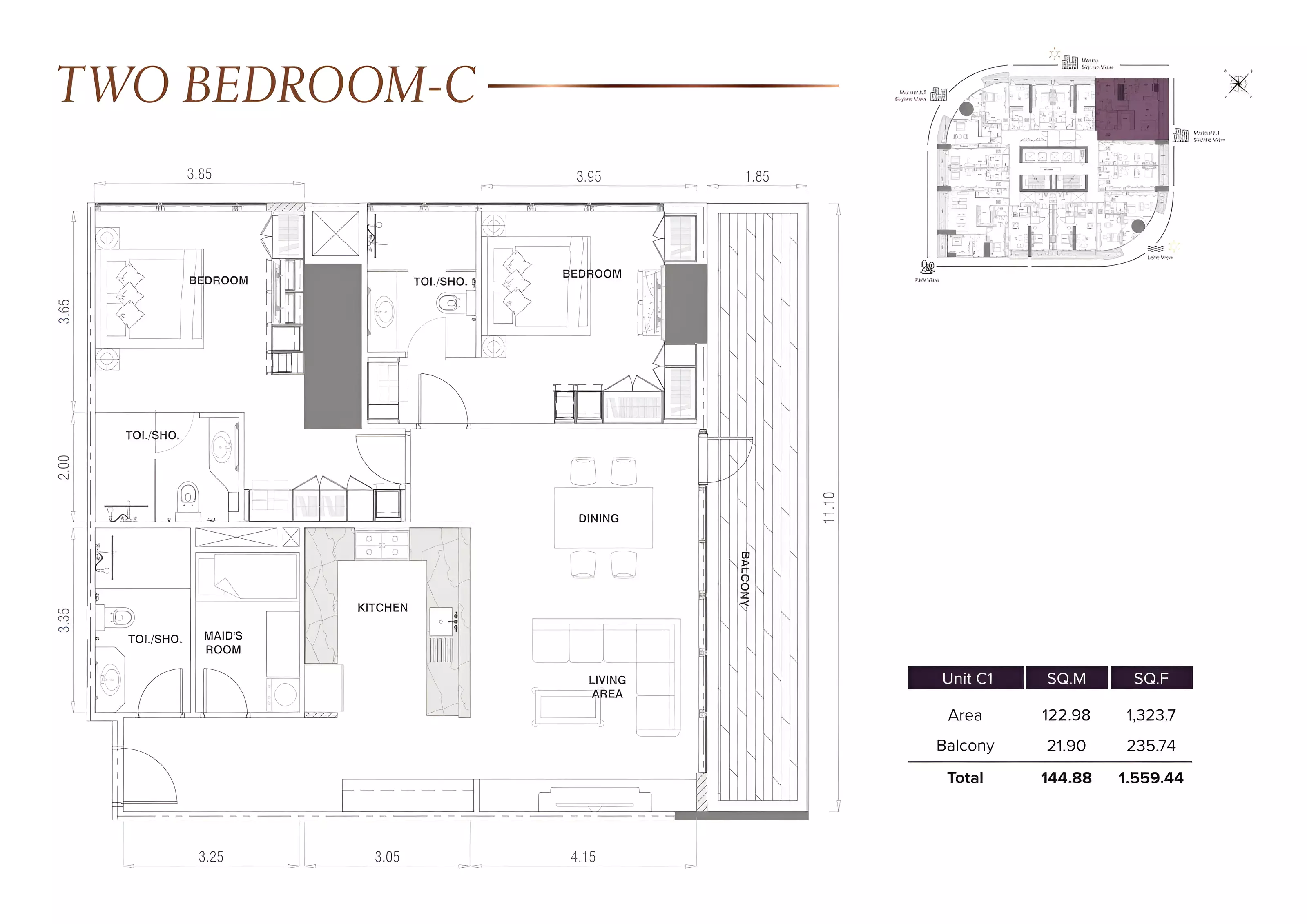 MBL Signature offers a variety of modern apartments with different unit sizes and price points. The available housing options include: Studio apartments, ranging from 538 to 638 sqft, starting at 1.2M AED. Price details are available upon inquiry. 1-bedroom apartments, ranging from 811 to 932 sqft, starting at 1.8M AED. Price details are available upon inquiry. 2-bedroom apartments, ranging from 1,559 to 1,666 sqft, starting at 2.9M AED. These apartments are designed to provide comfortable living spaces with high-quality finishes. Buyers can inquire for specific pricing and further details regarding these modern residential units.