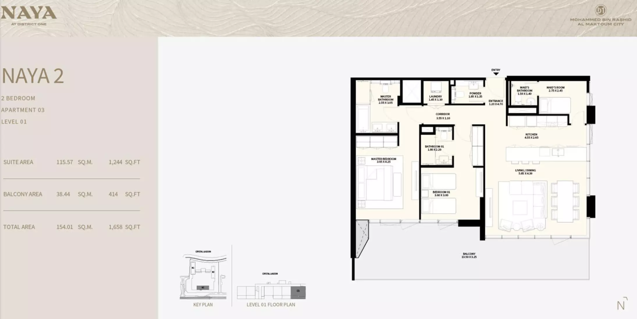 Naya Phase 2 by Nakheel is a strong investment due to its prime location in Mohammed Bin Rashid City (MBR City), offering easy access to Dubai's top landmarks, creating a serene living environment. With amenities like swimming pools, a state-of-the-art gym, wellness-focused spaces, and beachfront living, Naya Phase 2 caters to a modern, active lifestyle. The project’s strategic location, quality design, and strong potential for property value appreciation make it an attractive option for investors seeking both luxury and long-term returns.