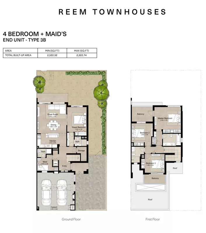 The delivery date for Reem Townhouses is set for December 2023. This timeline ensures the project will be completed with high-quality standards, ready for residents to move in.
