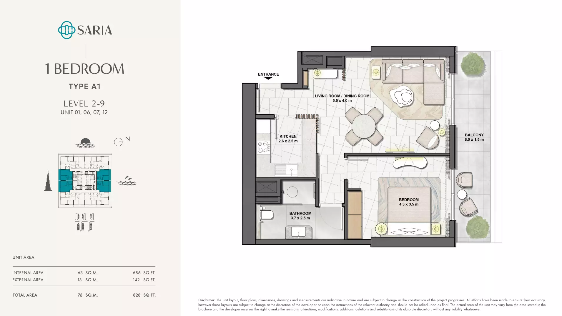 The delivery date for Saria is set for March 2028. This gives potential buyers ample time to prepare for the completion and handover of this luxurious project.