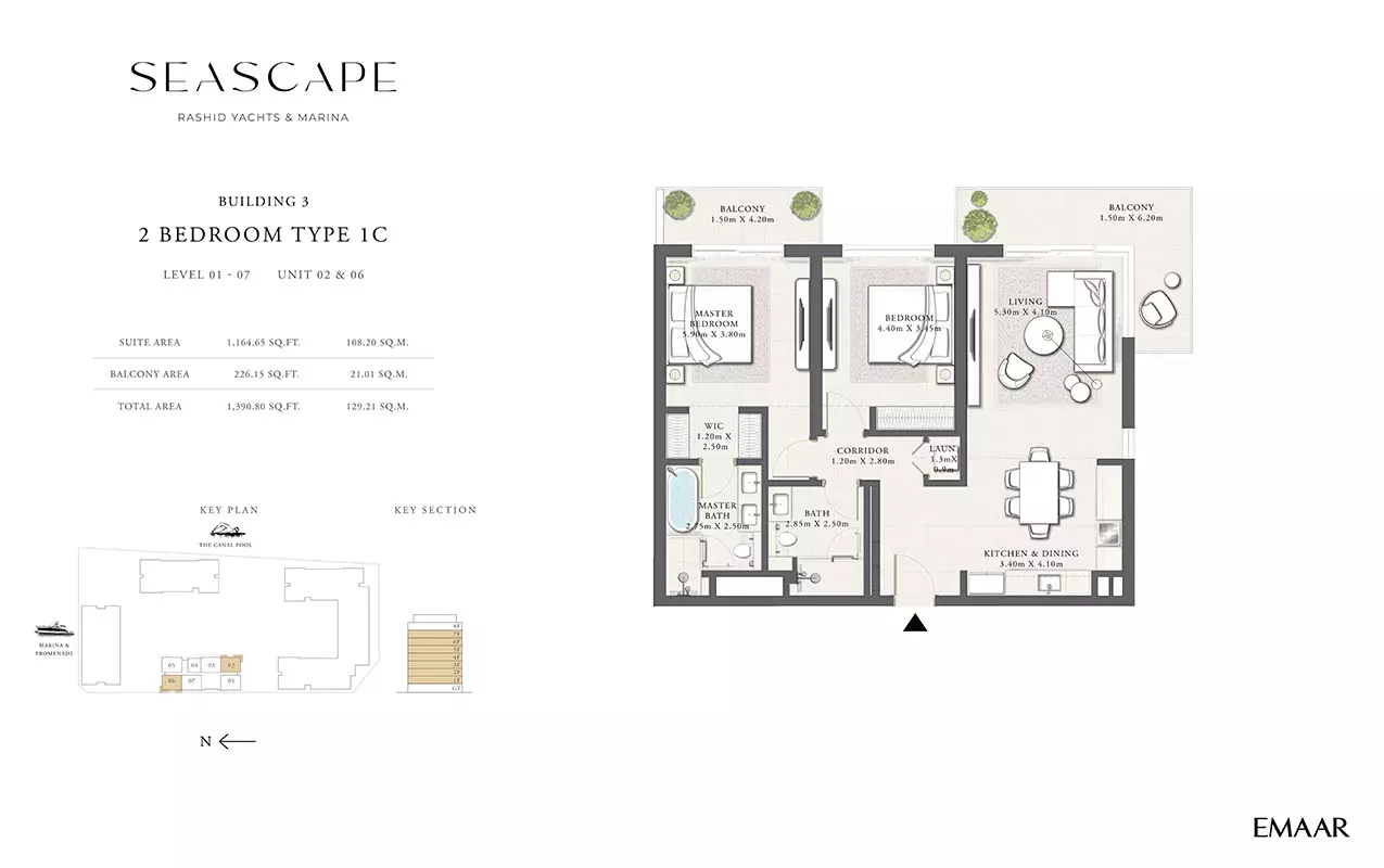 Seascape is a strong investment opportunity due to its prime location offering stunning views of the Marina and the Arabian Gulf, combined with easy access to Dubai's attractions. Developed by Emaar Properties, it promises exceptional quality and timely delivery. With its serene coastal living environment, Seascape is poised to offer long-term value in Dubai’s competitive real estate market.