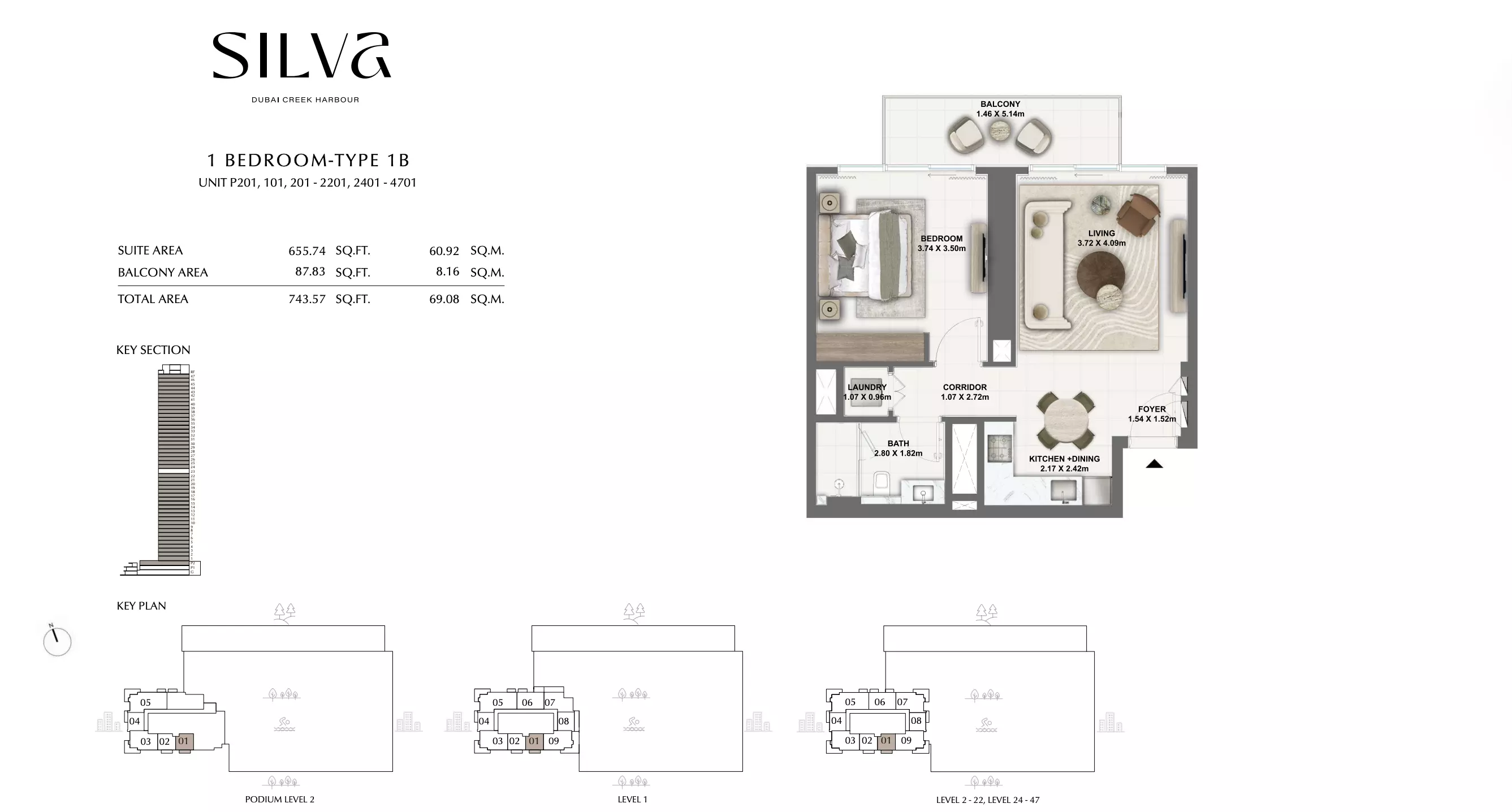Silva offers a range of residential units designed to cater to different lifestyle needs. The available housing options include 1-bedroom, 2-bedroom, and 3-bedroom apartments. • The 1-bedroom apartments range in size from 743 to 971 square feet, with prices starting at AED 1.8 M • The 2-bedroom apartments are larger, with sizes between 1,154 and 1,650 square feet, starting from AED 2.8 M. For those seeking more space. • The 3-bedroom apartments offer a consistent size of 1,833 square feet, starting from AED 3.9 M. For those seeking more space • The 3-bedroom townhouse are larger, with sizes between 3253 and 3265 square feet, starting from AED 6.3 M. For those seeking more space. • Each unit is thoughtfully designed to provide comfortable living spaces with modern layouts and quality finishes.