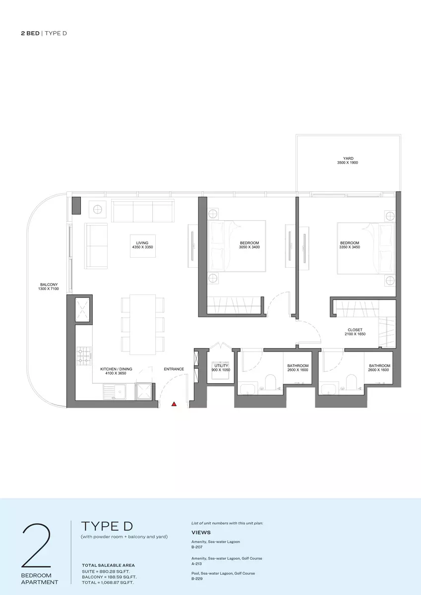 Delphine Beach Residences offers a variety of apartments with different sizes and prices: 1 Bedroom apartments range from 514 to 990 sqft, starting at 1.1M AED. 2 Bedroom apartments range from 652 to 1341 sqft, starting at 1.4M AED. 3 Bedroom apartments have a size of 2159 sqft, with prices starting at 4.9M AED. These options provide a mix of compact and spacious layouts for those seeking modern beachfront living in Umm Al Quwain.