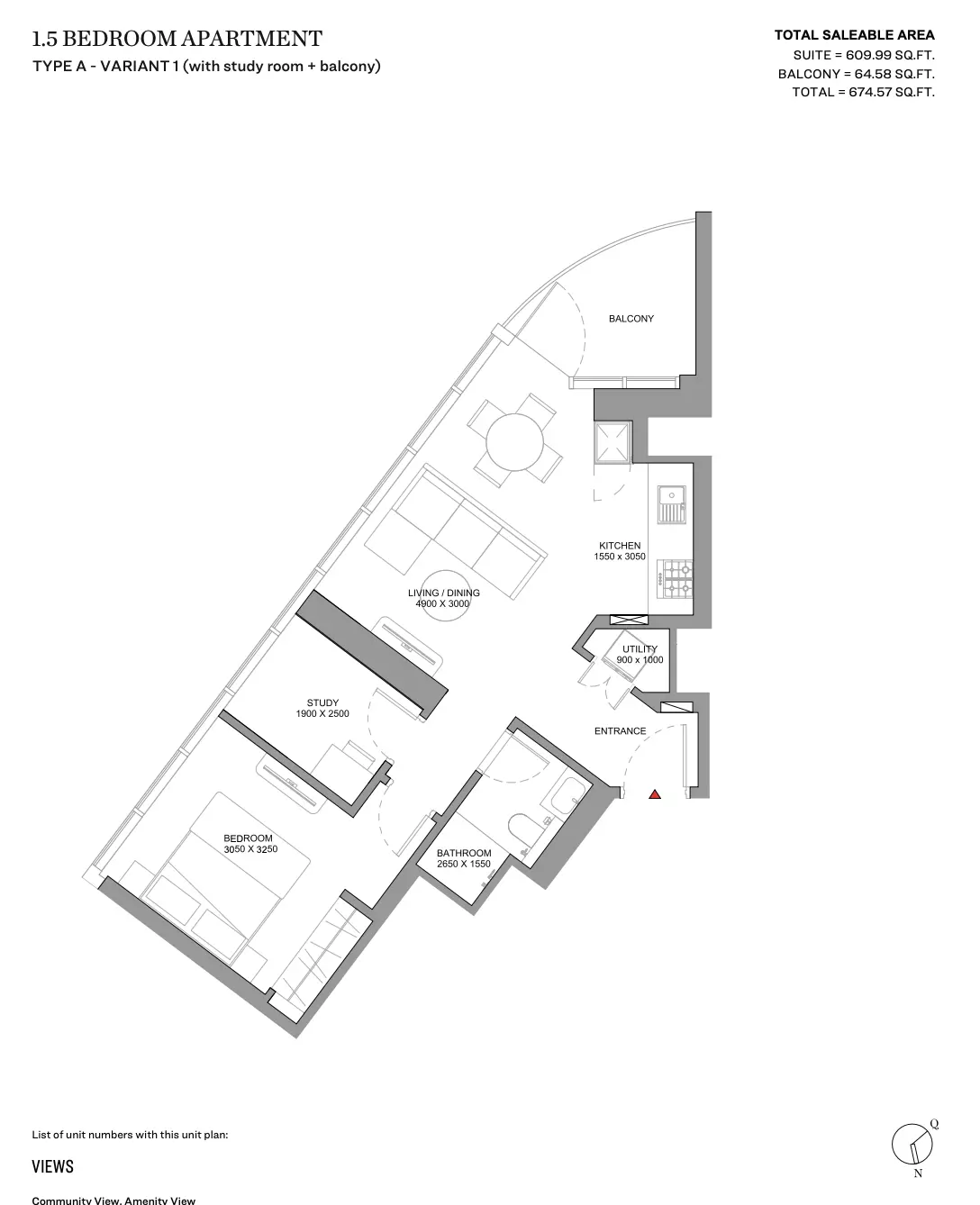 | Type A - Variant 1 (With Study Room + Balcony) | 674.00 | View |