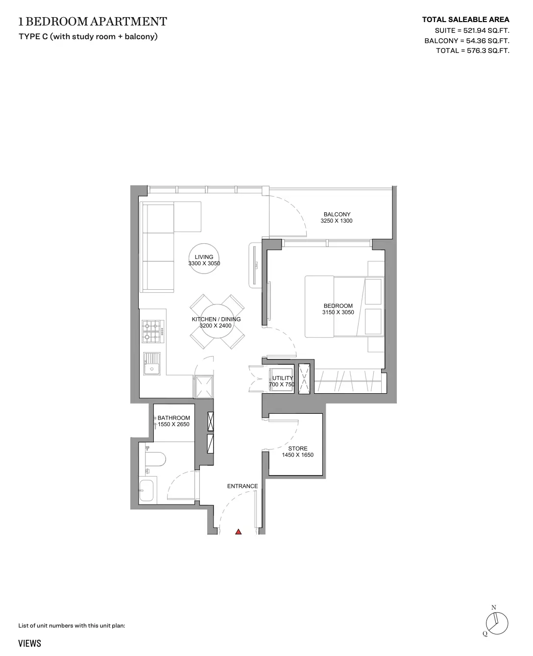 | Type C (With Study Room + Balcony) | 576.00 | View |