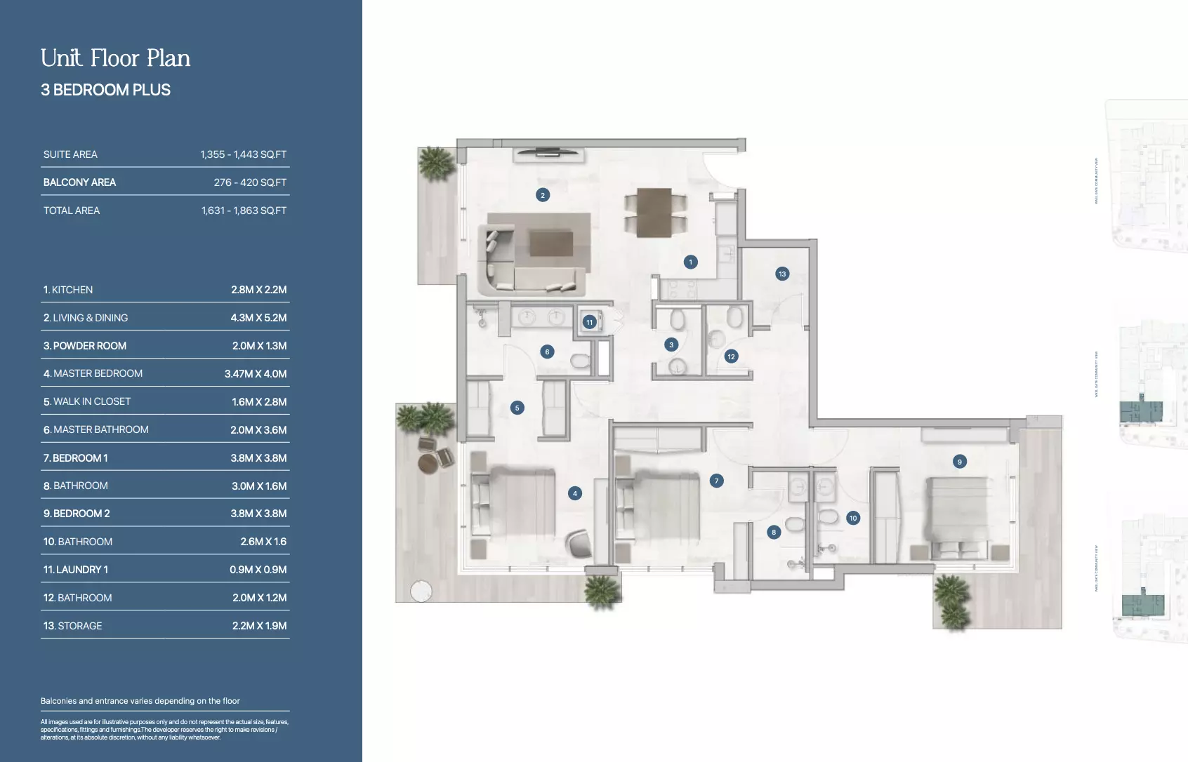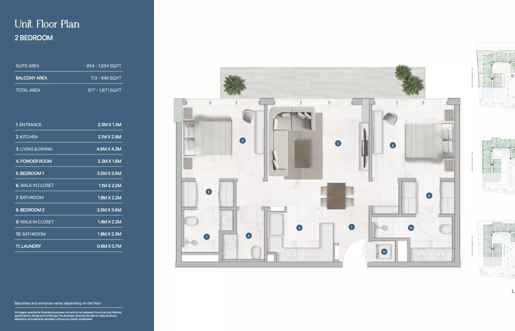 Sola Residences 2 offers the following apartment options: 1-Bedroom Apartments: Approximately 707 sq ft, starting from AED 1.1M 2-Bedroom Apartments: Ranging from 977 to 1,205 sq ft, starting from AED 1.5M 3-Bedroom Apartments: Approximately 1,631 sq ft, starting from AED 2.5M
