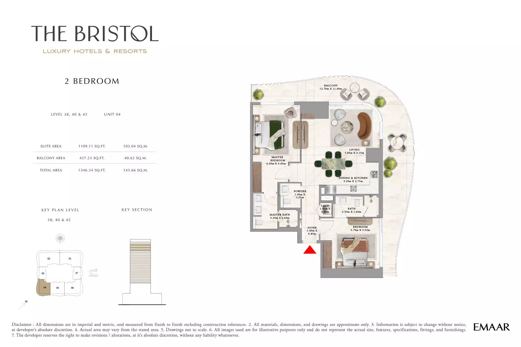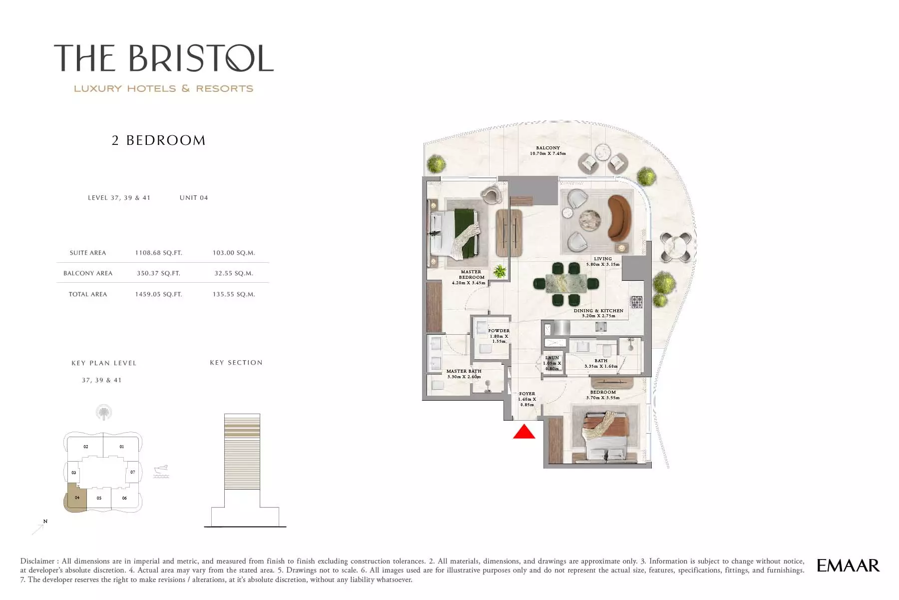 The Bristol offers a range of luxurious housing options: • 1 Bedroom Apartments: Approximately 825-835 sqft, starting from 3,700,000 AED. • 2 Bedroom Apartments: Approximately 1,459-1,546 sqft, starting from 6,400,000 AED. • 3 Bedroom Apartments: Approximately 1,911-2,074 sqft, starting from 10,000,000 AED. • 4 Bedroom Apartments: Approximately 2,500-2,616 sqft, starting from 14,000,000 AED. • 5 Bedroom Penthouses: Approximately 5,827-6,062 sqft, starting from 34,000,000 AED.