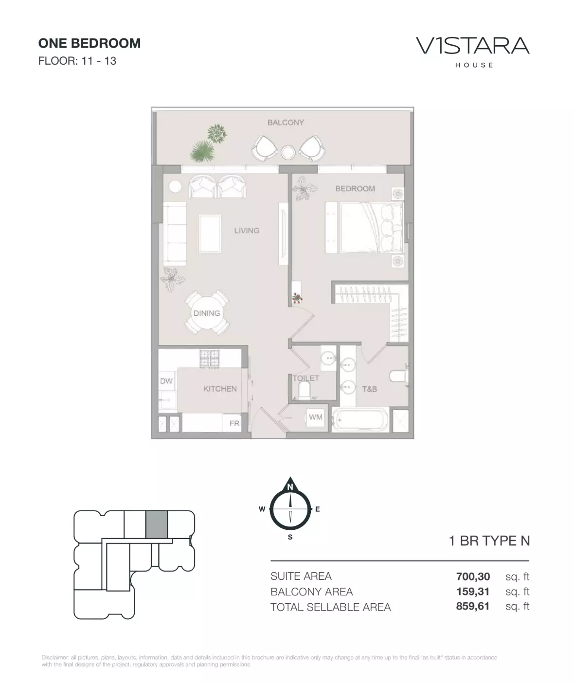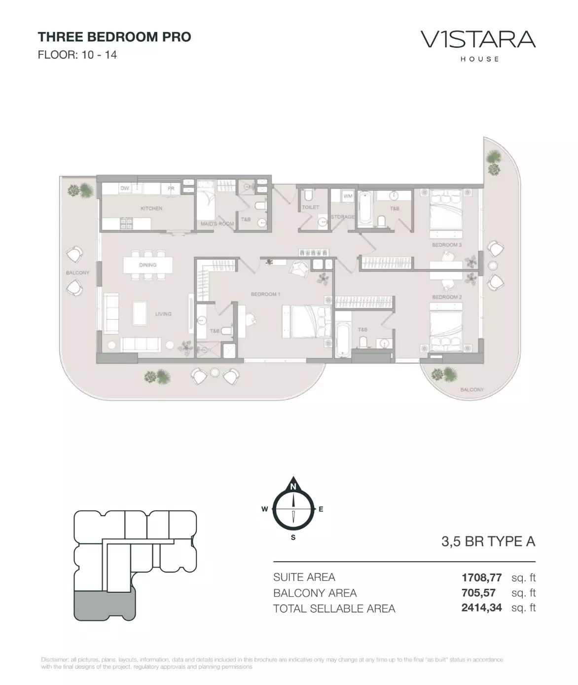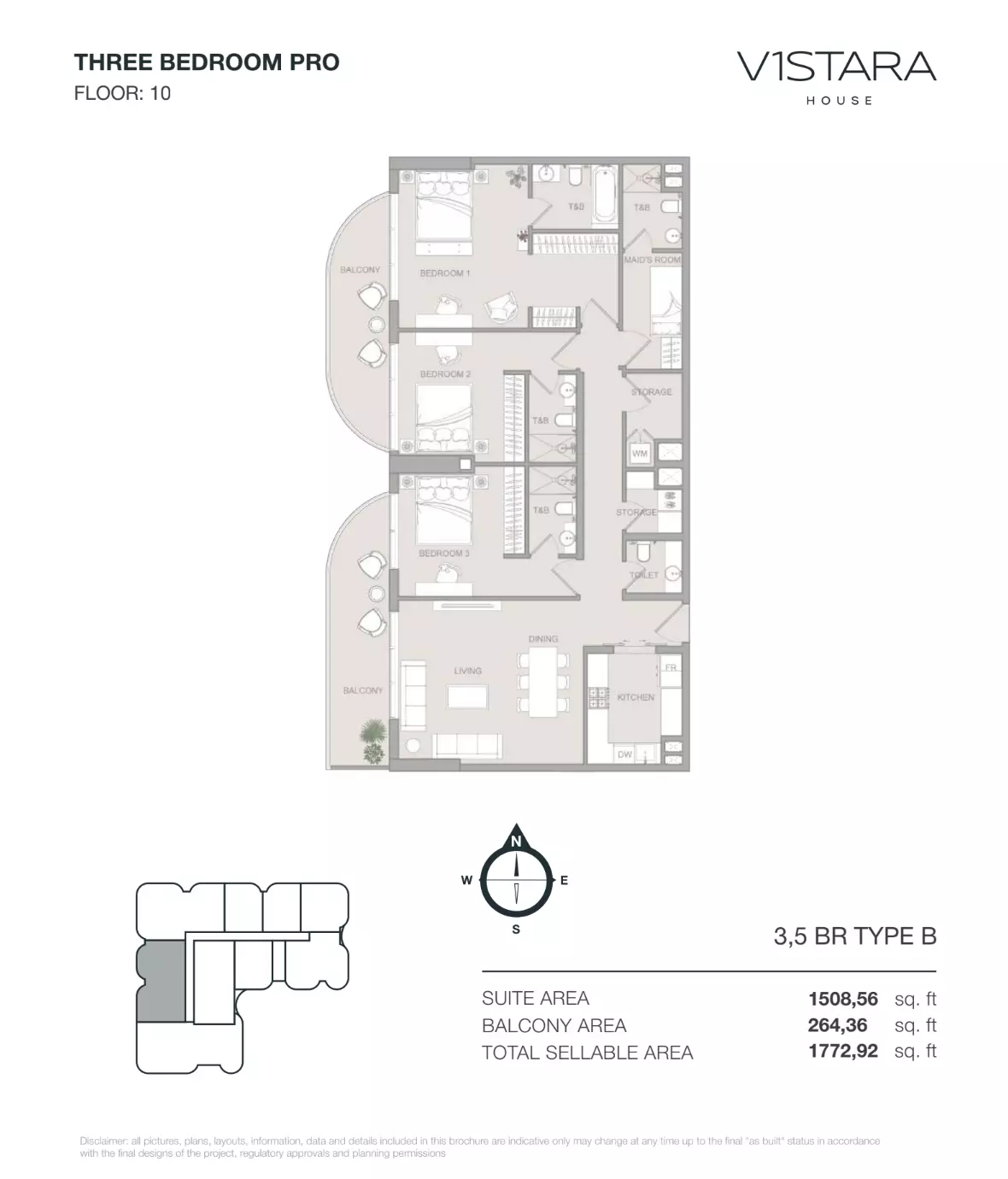 V1stara House offers the following housing options: 1 Bedroom apartments, with a size of 808 - 1316 sqft. 2 Bedroom apartments, with a size of 1277 - 2458 sqft. 3 Bedroom apartments, with a size of 1272- 2203 sqft. 4 Bedroom apartments, with a size of 1772- 2414 sqft. These units provide a range of options for buyers looking for spacious living in a prime Dubai location.