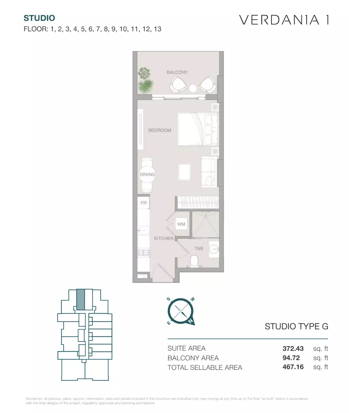 Verdan1a 1 offers the following apartment options: • Studio from 667K AED 467-794 sqft • 1 Bed from 1.1M AED 786-802 sqft • 3 Beds from1.7M AED 1350-1367 sqft