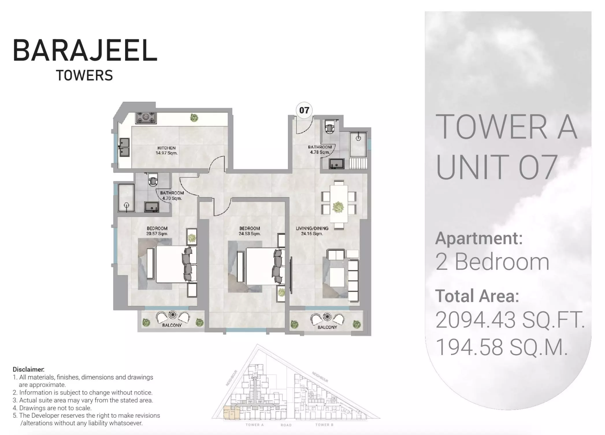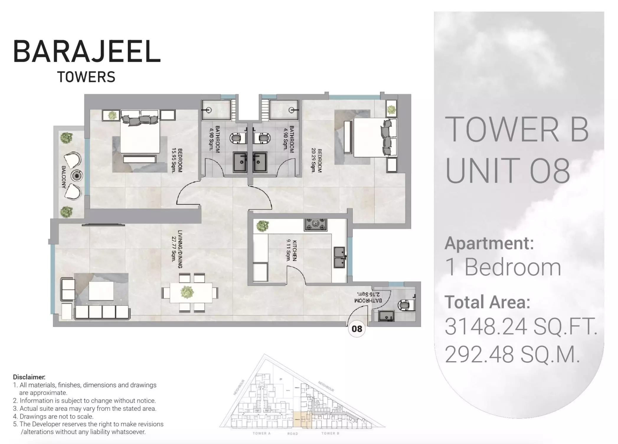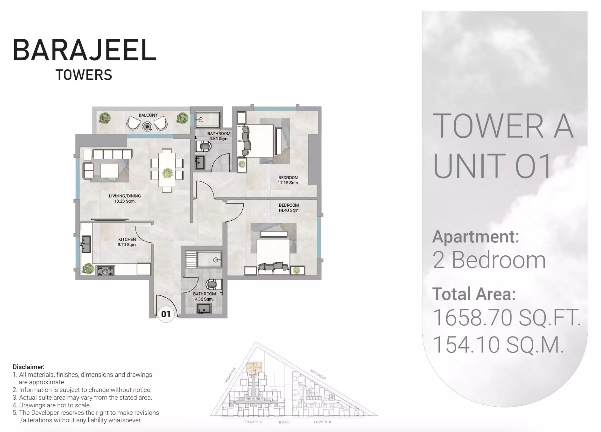 برج های بارجیل انواع گزینه های مسکن را در دو برج با اندازه ها و قیمت های مختلف واحد ارائه می دهند: • برج A: • آپارتمان های ۲ خوابه با قیمت شروع ۷۰۰,۰۰۰ درهم امارات، با اندازه های مختلف از ۱,۴۴۰ تا ۴,۴۳۷ فوت مربع. • برج B: • آپارتمان های ۱ خوابه با قیمت شروع ۶۰۰,۰۰۰ درهم امارات، با اندازه های مختلف از ۱,۰۸۸ تا ۳,۱۴۸ فوت مربع. • آپارتمان های ۲ خوابه با قیمت شروع ۷۰۰,۰۰۰ درهم امارات، با اندازه های مختلف از ۱,۵۹۰ تا ۳,۳۸۸ فوت مربع. علاوه بر این، ۱,۰۲۵ ملک فروش مجدد در داخل پروژه موجود است که فرصت های سرمایه گذاری مختلفی را در توسعه ارائه می دهد.