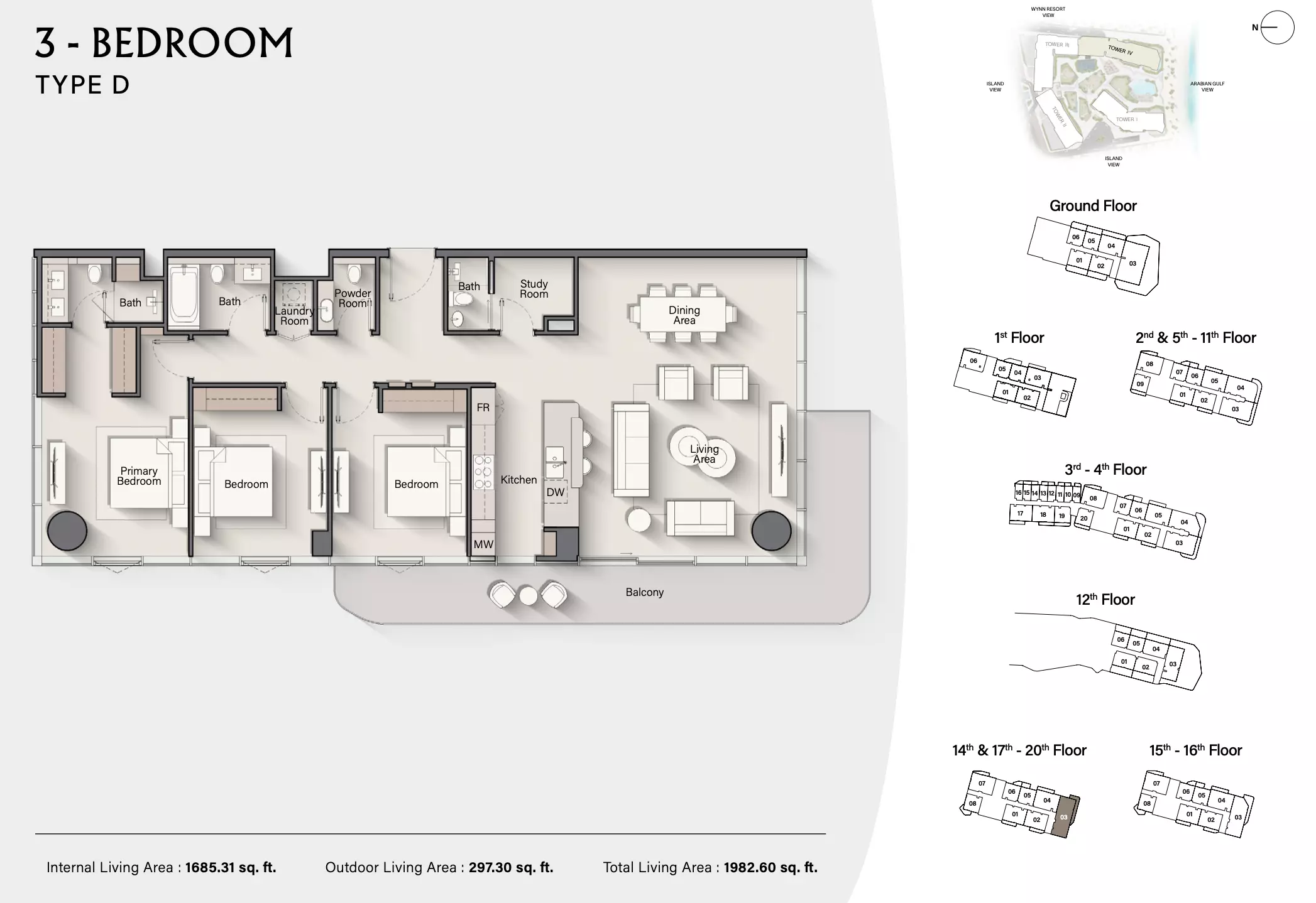 • آپارتمان آپارتمانهای استودیو: از ۳۸۵ فوت مربع تا ۶۰۶ فوت مربع آپارتمانهای ۱ خوابه: از ۸۴۰ فوت مربع تا ۹۵۱ فوت مربع با قیمت شروع ۲.۸ میلیون درهم امارات آپارتمانهای ۲ خوابه: از ۱,۰۹۶ فوت مربع تا ۱,۵۳۰ فوت مربع با قیمت شروع ۳.۴ میلیون درهم امارات آپارتمانهای ۳ خوابه: از ۱.۶۹۷ فوت مربع تا ۱۹۸۲ فوت مربع • دوبلکس دوبلکس ۱ خوابه: از ۱,۳۲۱ فوت مربع تا ۱,۳۴۵ فوت مربع دوبلکس ۲ خوابه: از ۲,۰۲۵ فوت مربع تا ۲,۱۴۹ فوت مربع دوبلکس ۳ خوابه: ۵,۴۷۱ فوت مربع دوبلکس ۴ خوابه: ۵,۴۷۱ فوت مربع • پنتهاوس پنتهاوسهای ۶ خوابه: ۱۳,۷۵۹ فوت مربع • ویلاها ویلاهای ۵ خوابه: از ۷,۷۳۵ فوت مربع تا ۷,۷۳۸ فوت مربع
