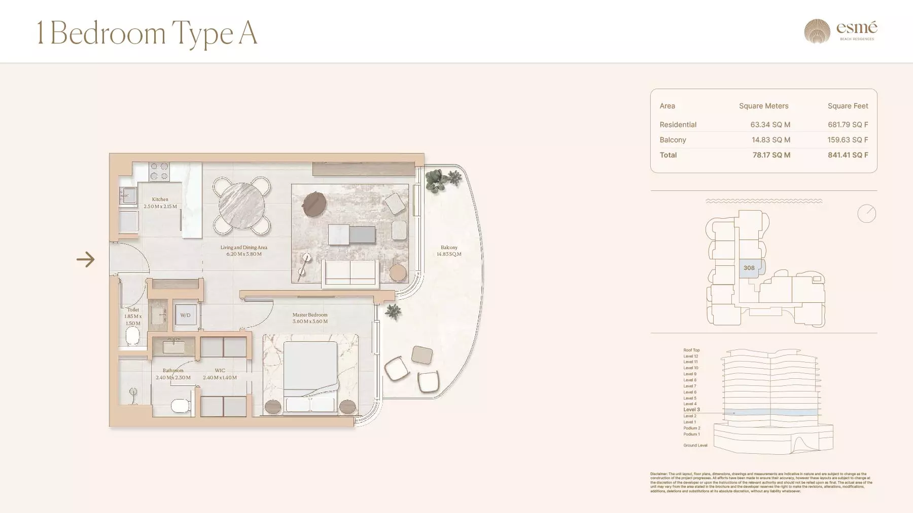 اقامتگاههای ساحلی اسم (Esme Beach Residences) مجموعهای از آپارتمانهای 1، 2 و 3 خوابه با طرحهای مختلف را ارائه میدهد: آپارتمانهای 1 خوابه: اندازهها از 756 تا 1264 فوت مربع متغیر است. آپارتمانهای 2 خوابه: اندازهها از 1104 تا 1854 فوت مربع متغیر است. آپارتمانهای 3 خوابه: اندازهها متفاوت است. جزئیات خاص را میتوان از توسعهدهنده دریافت کرد.