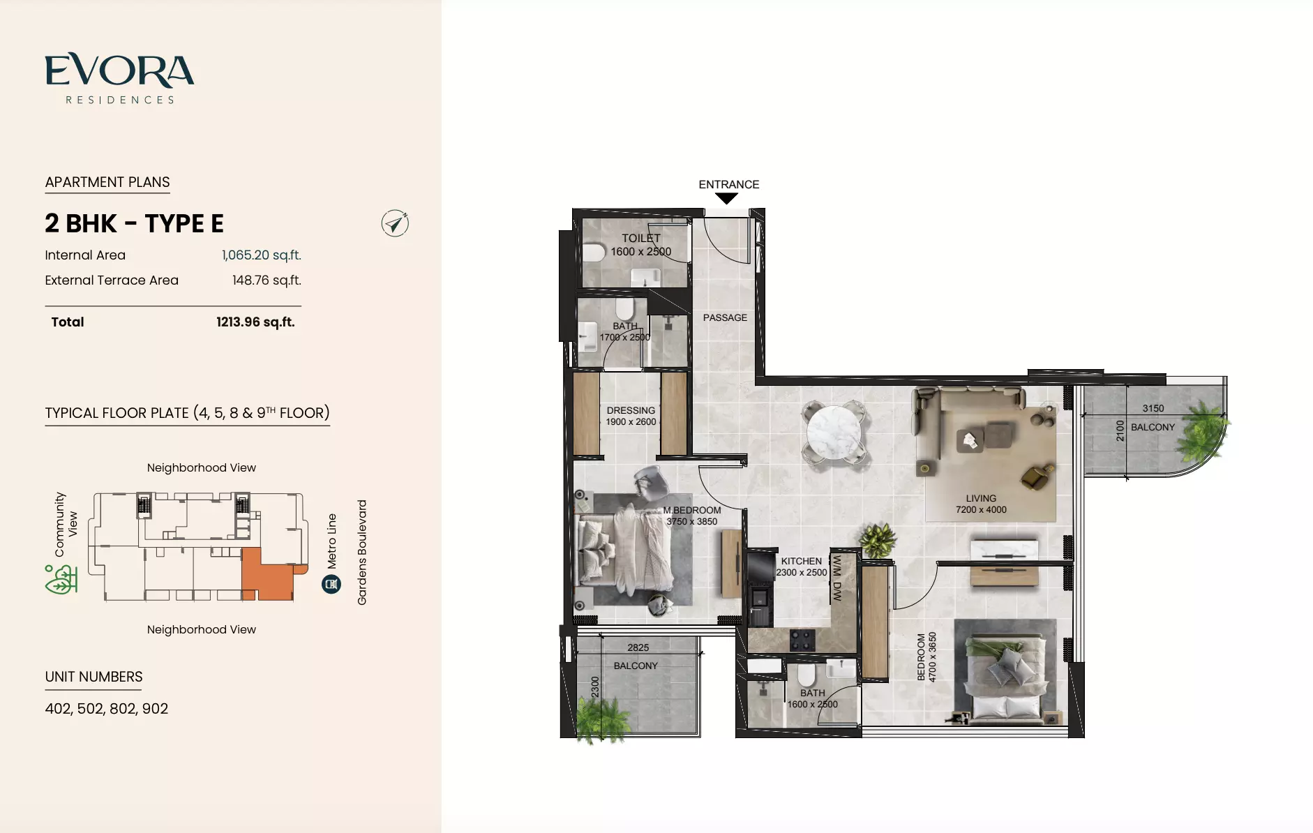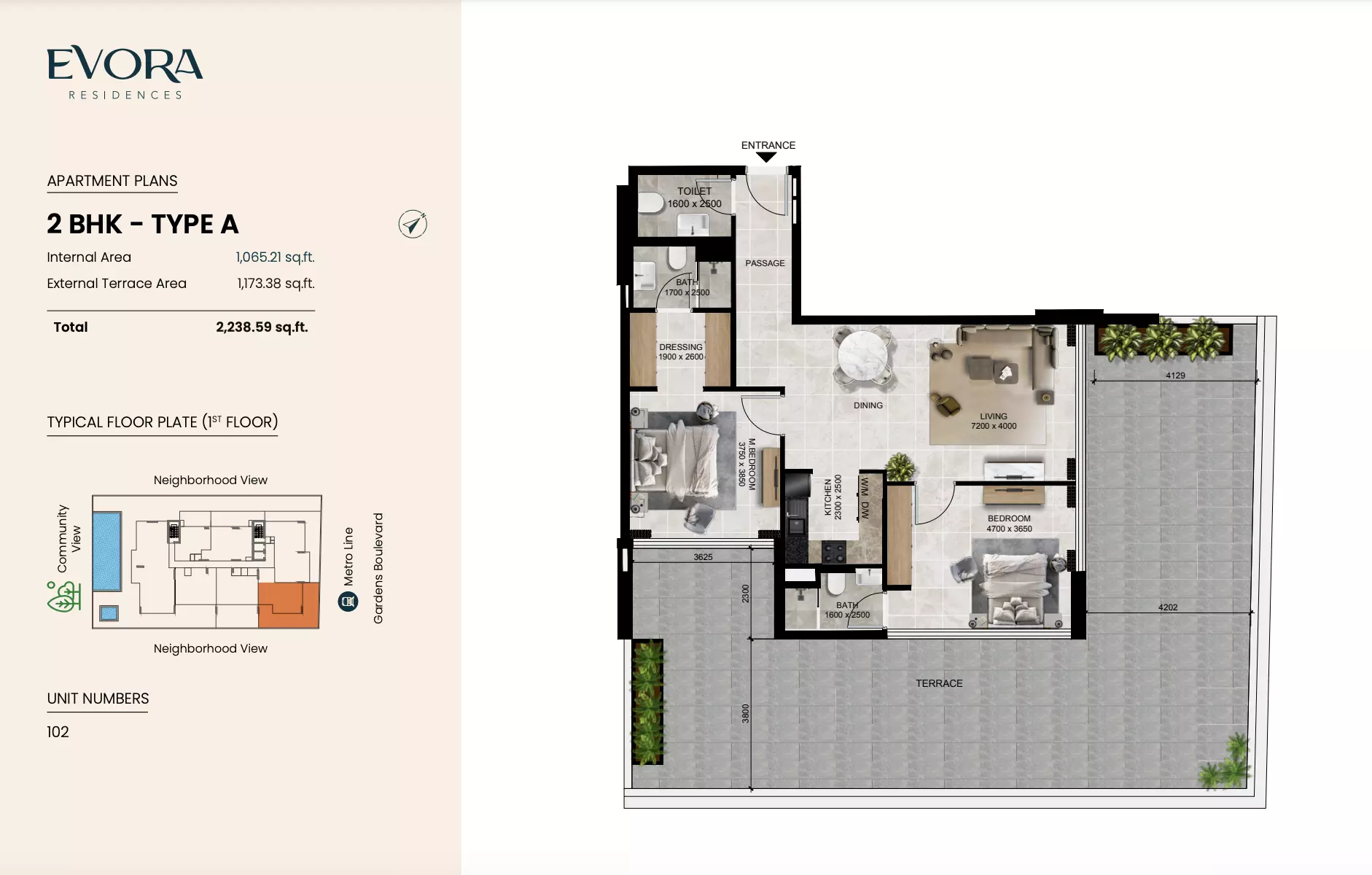 قیمت اولیه رزیدنسز اورا ۱,۱۰۰,۰۰۰ درهم است.