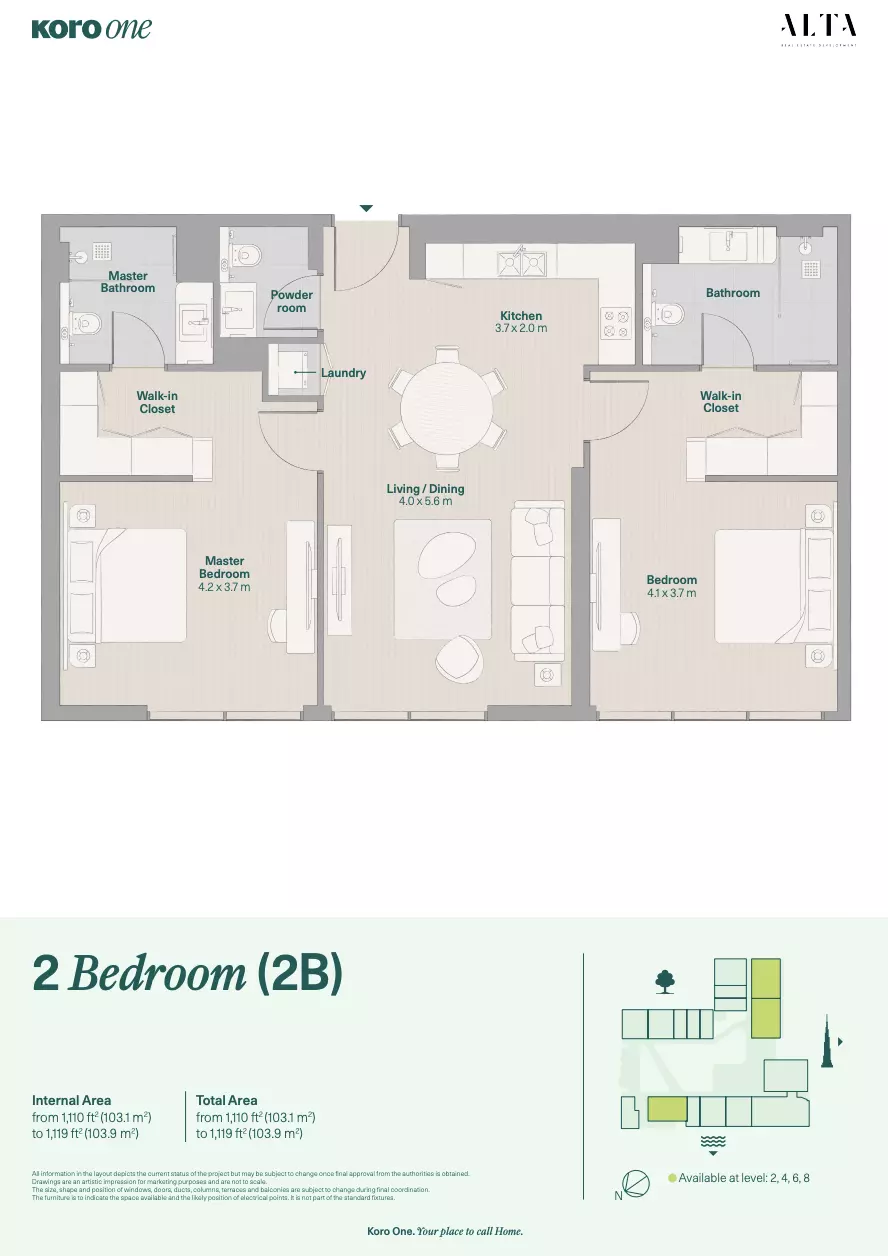 کورو وان انواع گزینههای مسکونی را ارائه میدهد که برای پاسخگویی به نیازهای مختلف سبک زندگی طراحی شدهاند. این پروژه شامل آپارتمانهای مدرن و یک واحد دوبلکس محدود است که همگی با چیدمانهای کارآمد و روکشهای درجه یک ساخته شدهاند. انواع آپارتمانهای موجود شامل استودیوهایی با مساحت ۳۷۰ تا ۴۹۹ فوت مربع، ایدهآل برای مجردها یا متخصصان جوان است. واحدهای یک خوابه از ۷۵۱ تا ۱,۰۱۵ فوت مربع و آپارتمانهای دو خوابه بین ۱,۱۱۶ تا ۱,۹۵۲ فوت مربع هستند و فضای کافی را برای زوجها یا خانوادههای کوچک فراهم میکنند. برای کسانی که به دنبال فضاهای زندگی بزرگتر هستند، کورو وان همچنین شامل یک دوبلکس سه خوابه به مساحت ۲,۴۸۳ فوت مربع است. قیمت واحدهای یک خوابه از ۱.۴ میلیون درهم امارات شروع میشود و آن را به گزینهای رقابتی در بازار مسکن مرکزی دبی تبدیل میکند.
