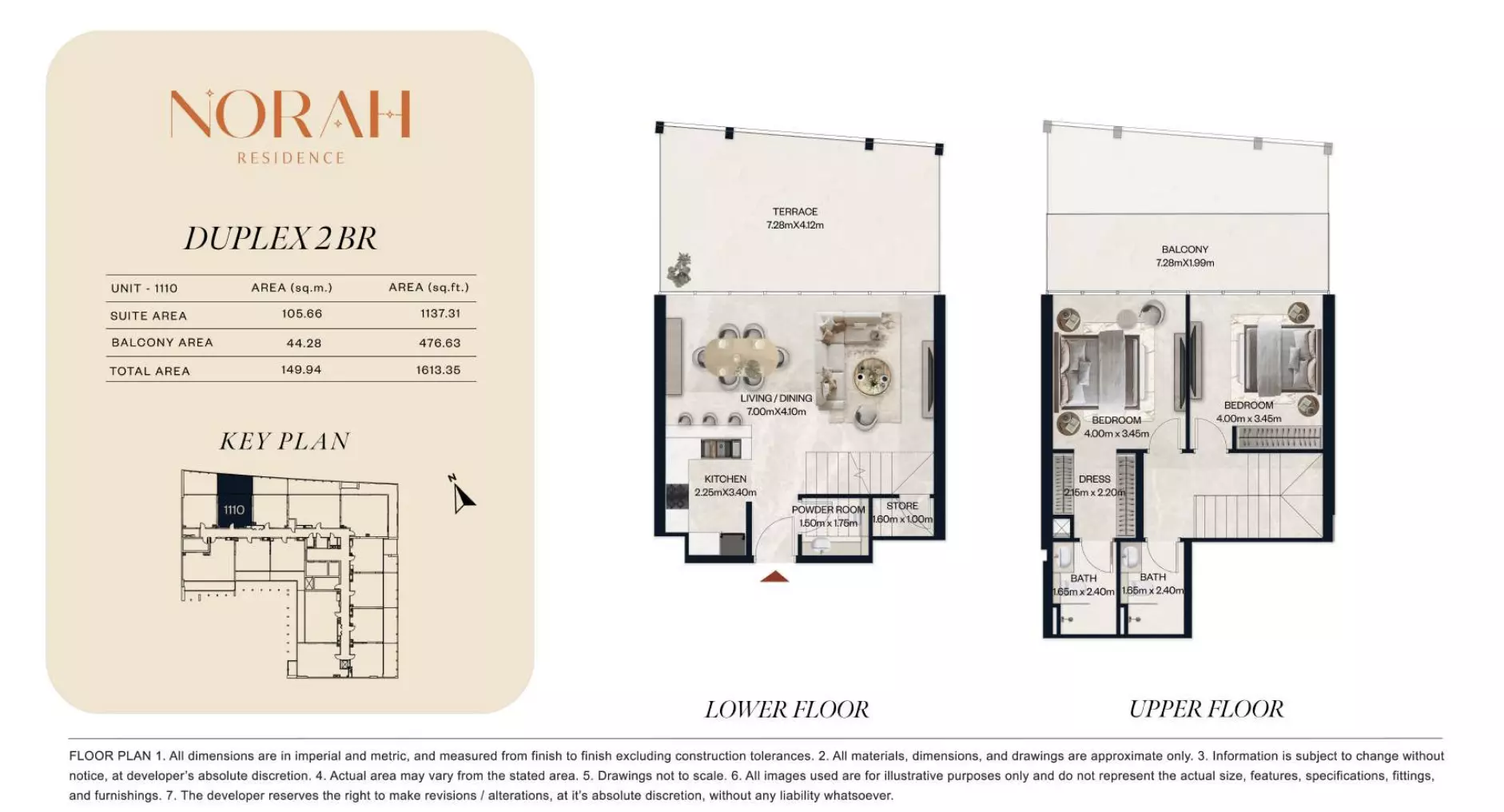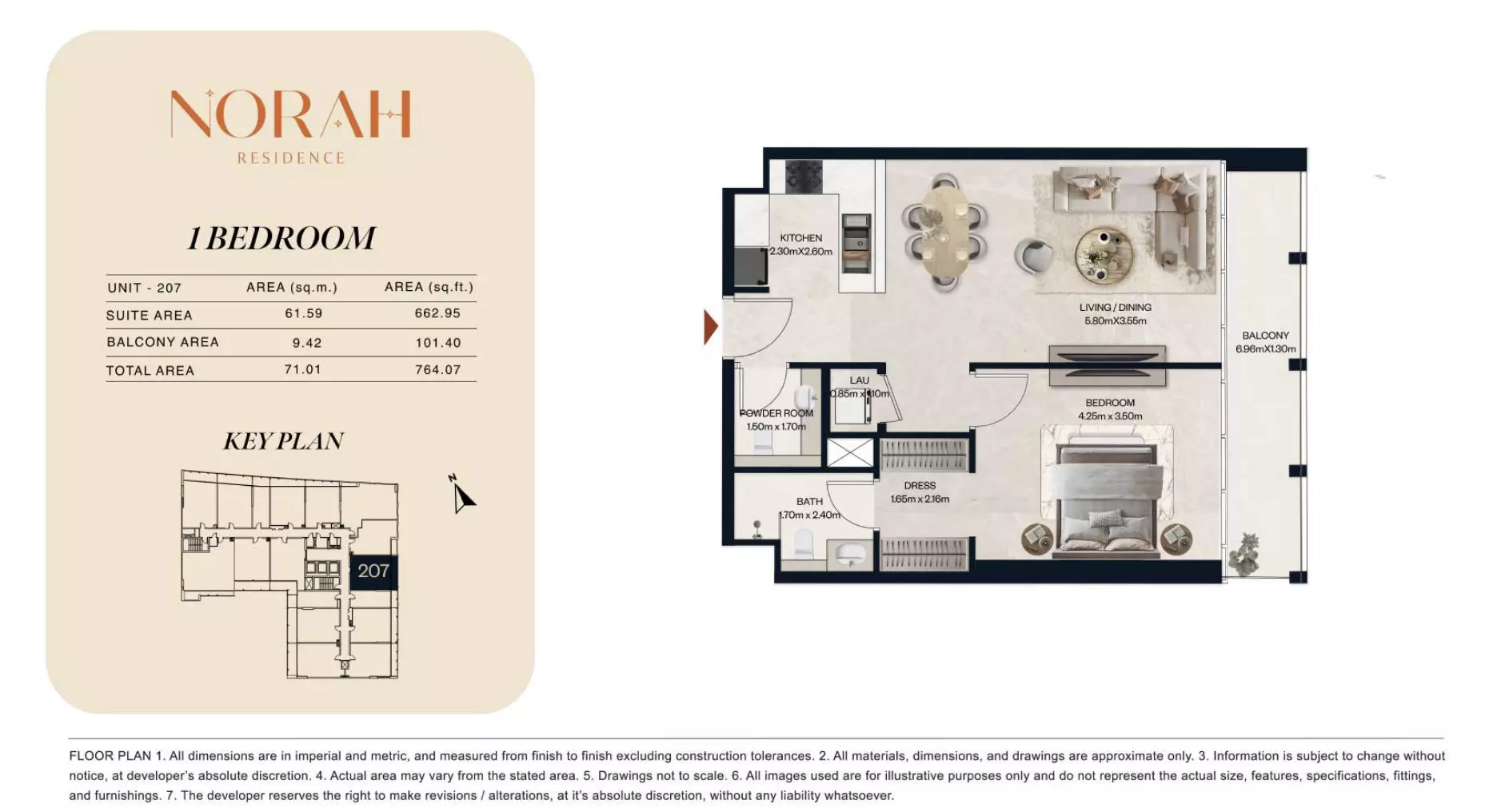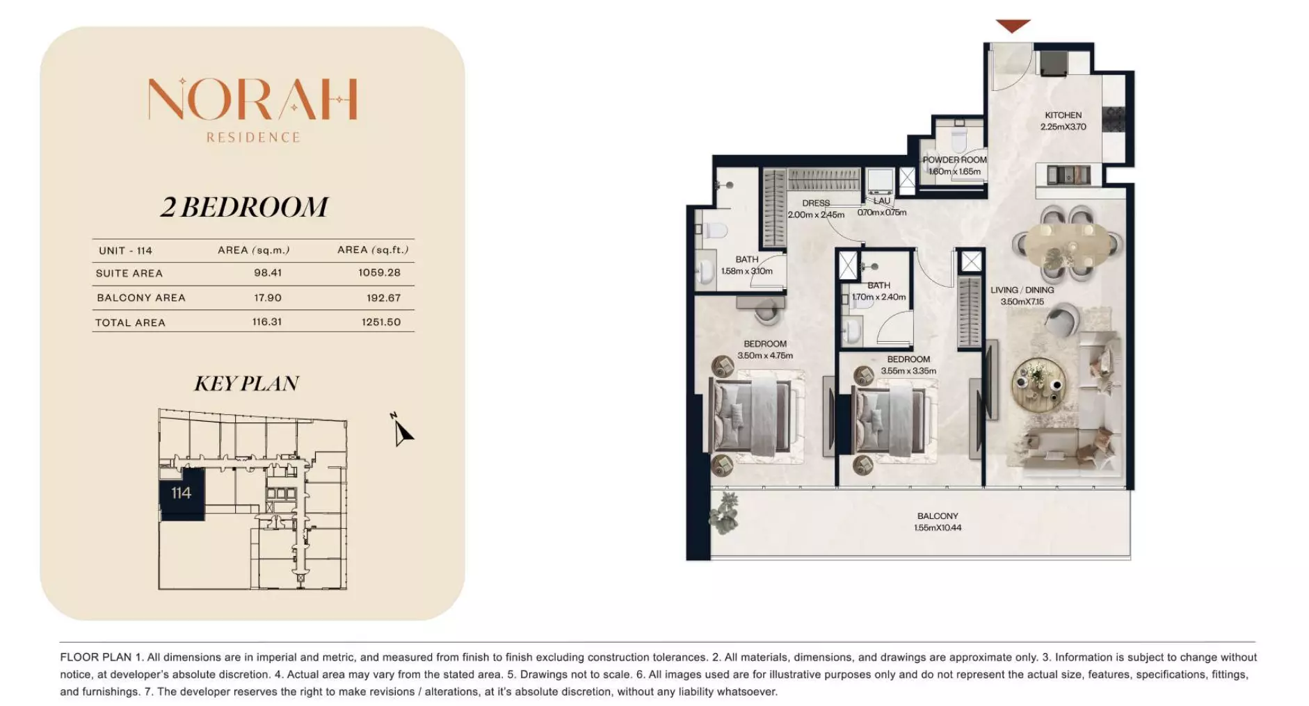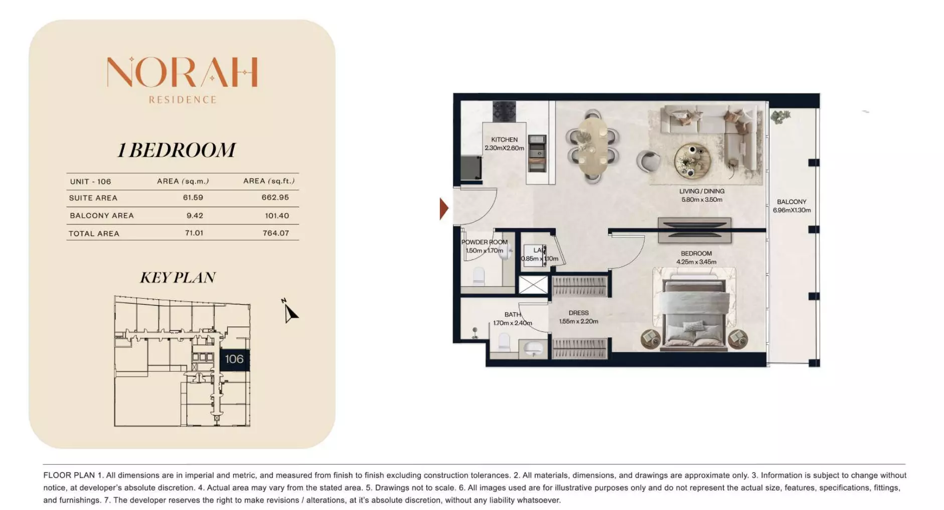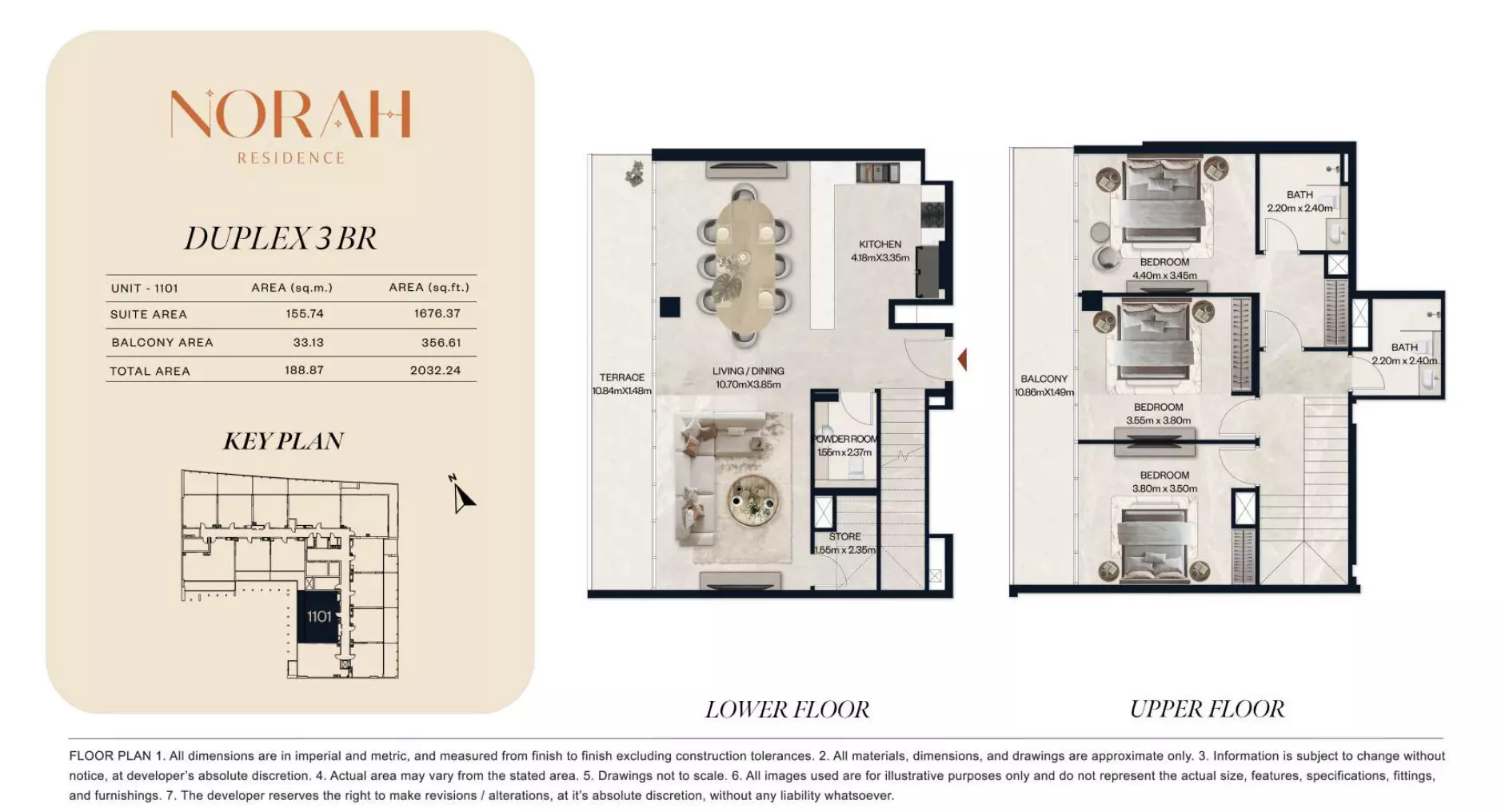 نورا رزیدنس طیف گستردهای از آپارتمانها و دوبلکسها را با چیدمانهایی ارائه میدهد که برای پاسخگویی به نیازهای مختلف خانوار طراحی شدهاند. این پروژه شامل استودیوهایی است که از ۶۵۰,۰۰۰ درهم شروع میشوند، با مساحت بین ۳۸۲ تا ۴۱۱ فوت مربع، مناسب برای زندگی جمع و جور. آپارتمانهای یک خوابه از ۱.۱ میلیون درهم در دسترس هستند که فضاهایی از ۷۱۸ تا ۸۸۹ فوت مربع را ارائه میدهند. برای گزینههای بزرگتر، آپارتمانهای دو خوابه از ۱.۸ میلیون درهم قیمت دارند، با مساحت واحد از ۱۰۷۵ تا ۱۲۵۱ فوت مربع. این مجموعه همچنین واحدهای دوبلکس دو خوابه را از ۲.۲ میلیون درهم با مساحت از ۱۴۳۶ تا ۱۶۷۴ فوت مربع ارائه میدهد. برای خانوادههایی که به دنبال فضای بیشتری هستند، آپارتمانهای سه خوابه از ۳ میلیون درهم با چیدمانهای وسیع از ۲۰۳۲ تا ۲۷۳۱ فوت مربع در دسترس هستند. این انتخاب انعطافپذیری را برای خریداران در ترجیحات مختلف بودجه و فضا تضمین میکند.