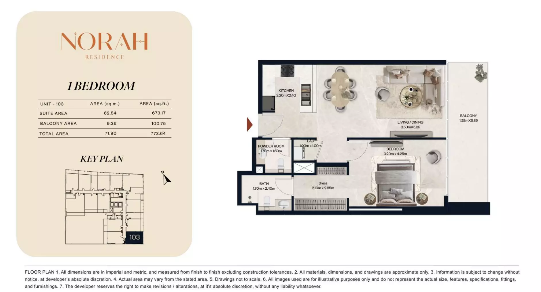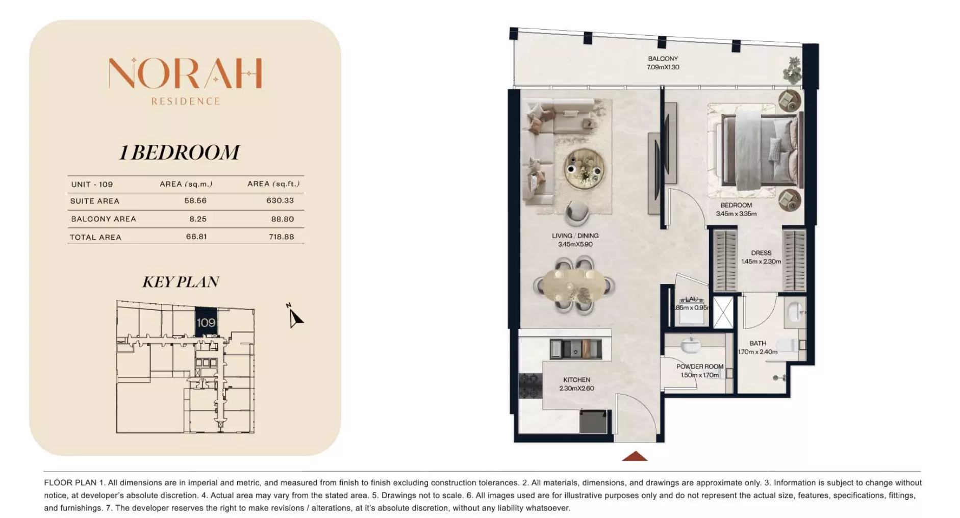 قیمت اولیه نورا رزیدنس ۶۵۰,۰۰۰ درهم است.