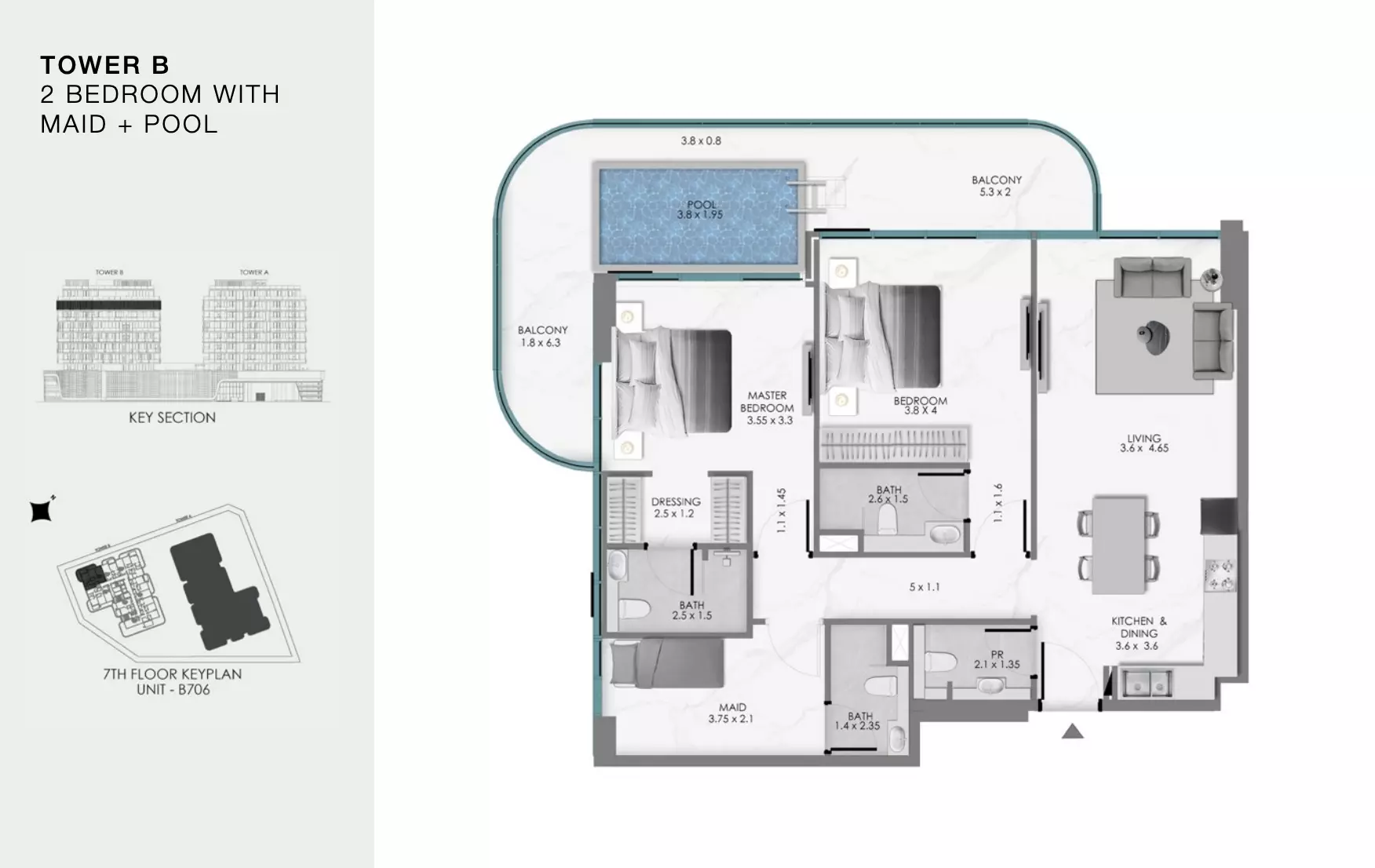 اوشن بی از سامانا طیف متنوعی از آپارتمانهای لوکس را در دو برج مسکونی – برج A و برج B – ارائه میدهد که برای پاسخگویی به نیازهای مختلف سبک زندگی طراحی شدهاند. هر دو برج دارای گزینههای آپارتمانهای ۱ خوابه، ۲ خوابه، ۳ خوابه و ۴ خوابه هستند. هر واحد با پرداختهای مدرن، طرحهای باز و پنجرههای بزرگ که نور طبیعی را افزایش داده و چشماندازهای وسیعی را ارائه میدهند، ساخته شده است. اگرچه جزئیات دقیق ابعاد واحد و قیمتها هنوز به طور عمومی منتشر نشده است، این پروژه به عنوان یک مقصد مسکونی سطح بالا معرفی شده است. اوشن بی که برای کاربران نهایی و سرمایهگذاران ایدهآل است، طراحی زیبا را با امکانات رفاهی به سبک تفریحی در یک موقعیت مکانی عالی رو به آب ترکیب میکند و ارزش بلندمدت و زندگی شهری راحت را ارائه میدهد.