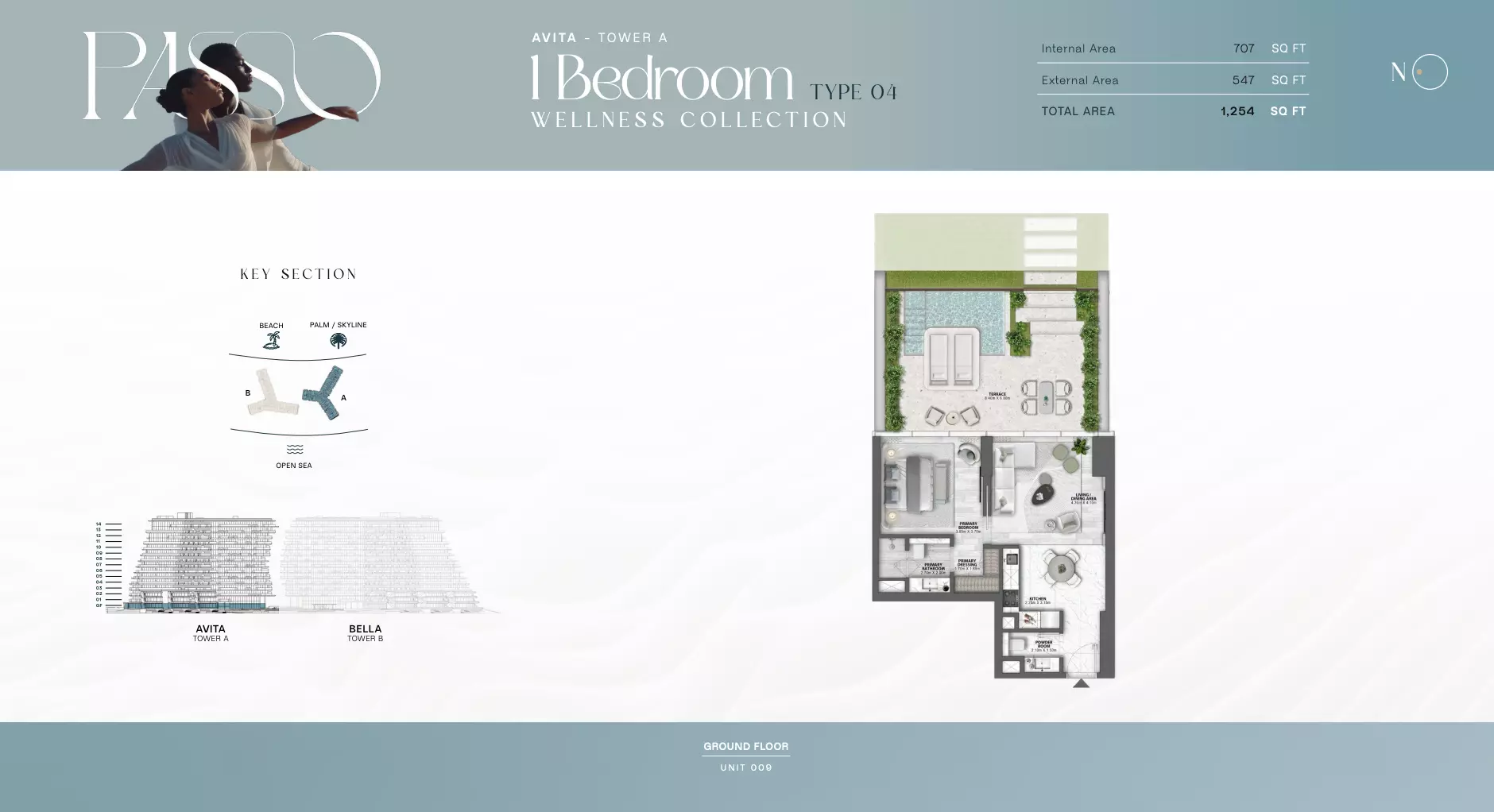 پاسو بای بیاند در دبی در پالم جمیرا واقع شده است و آدرسی عالی با دسترسی مستقیم به زندگی ساحلی ارائه میدهد.