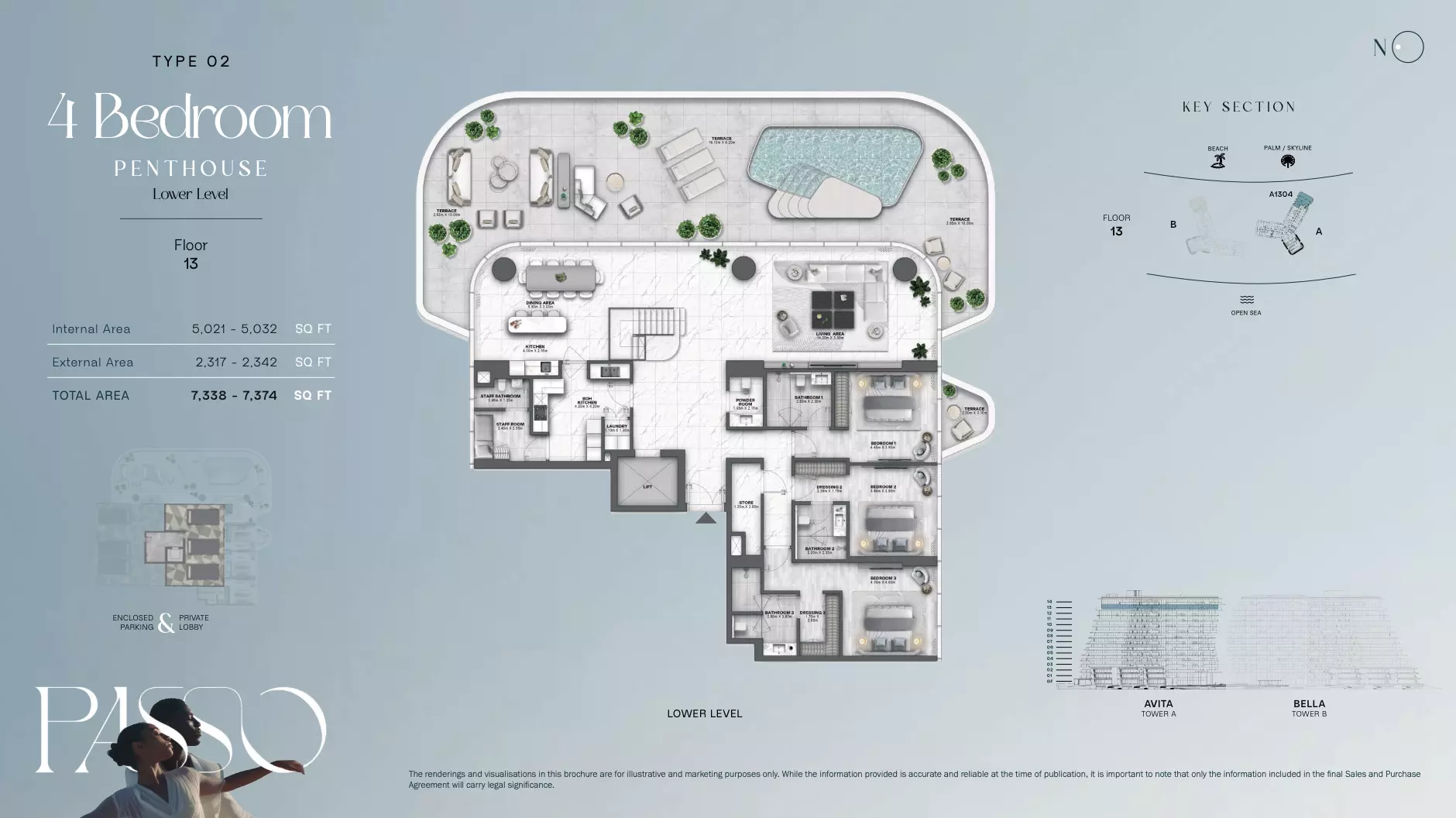 پاسو بای بیاند به دلیل موقعیت مکانی عالی در پالم جمیرا و امکانات رفاهی استثنایی، یک انتخاب سرمایهگذاری قوی است. این مجموعه شامل واحدهای مسکونی ۱ تا ۶ خوابه با چشماندازهای پانورامیک از خلیج فارس، پرداختهای سطح بالا و بالکنهای وسیع است. ساکنان از دسترسی مستقیم به ساحل، پارکهای محوطهسازی شده، مارینا با قایقهای موتوری و امکانات پیشرفته تناسب اندام و سلامتی لذت میبرند. موقعیت استراتژیک آن اتصال عالی به جاده شیخ زاید و جاذبههای اطراف مانند آتلانتیس د پالم، نخیل مال و دبی مارینا را تضمین میکند. پاسو بای بیاند با طراحی ممتاز، گزینههای تفریحی در سطح جهانی و نزدیکی به مقاصد برتر هتلداری، ارزش بلندمدت و پتانسیل اجاره را ارائه میدهد.