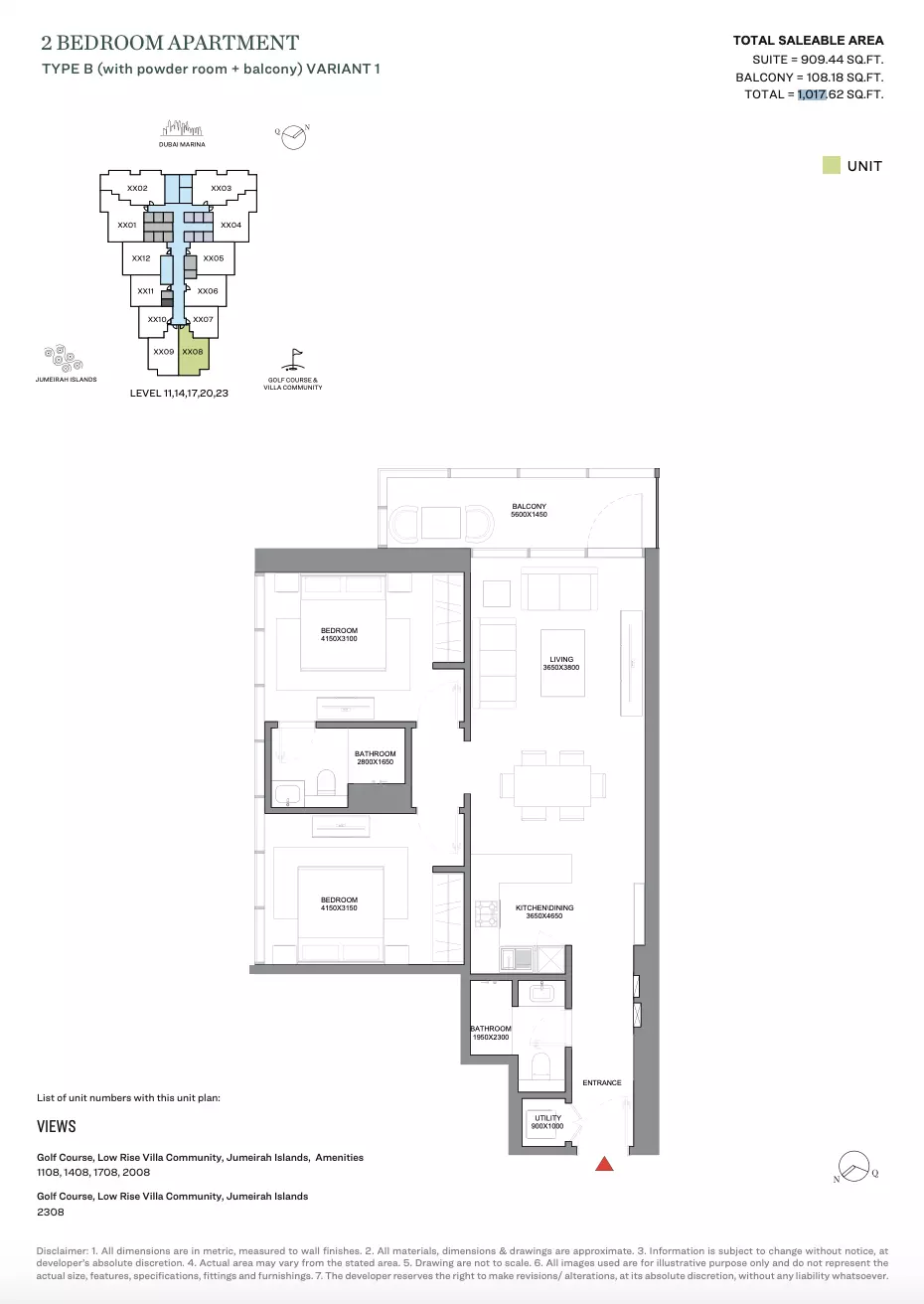 | Type B (with powder room + balcony) Variant 1 | 1,120.00 | View |