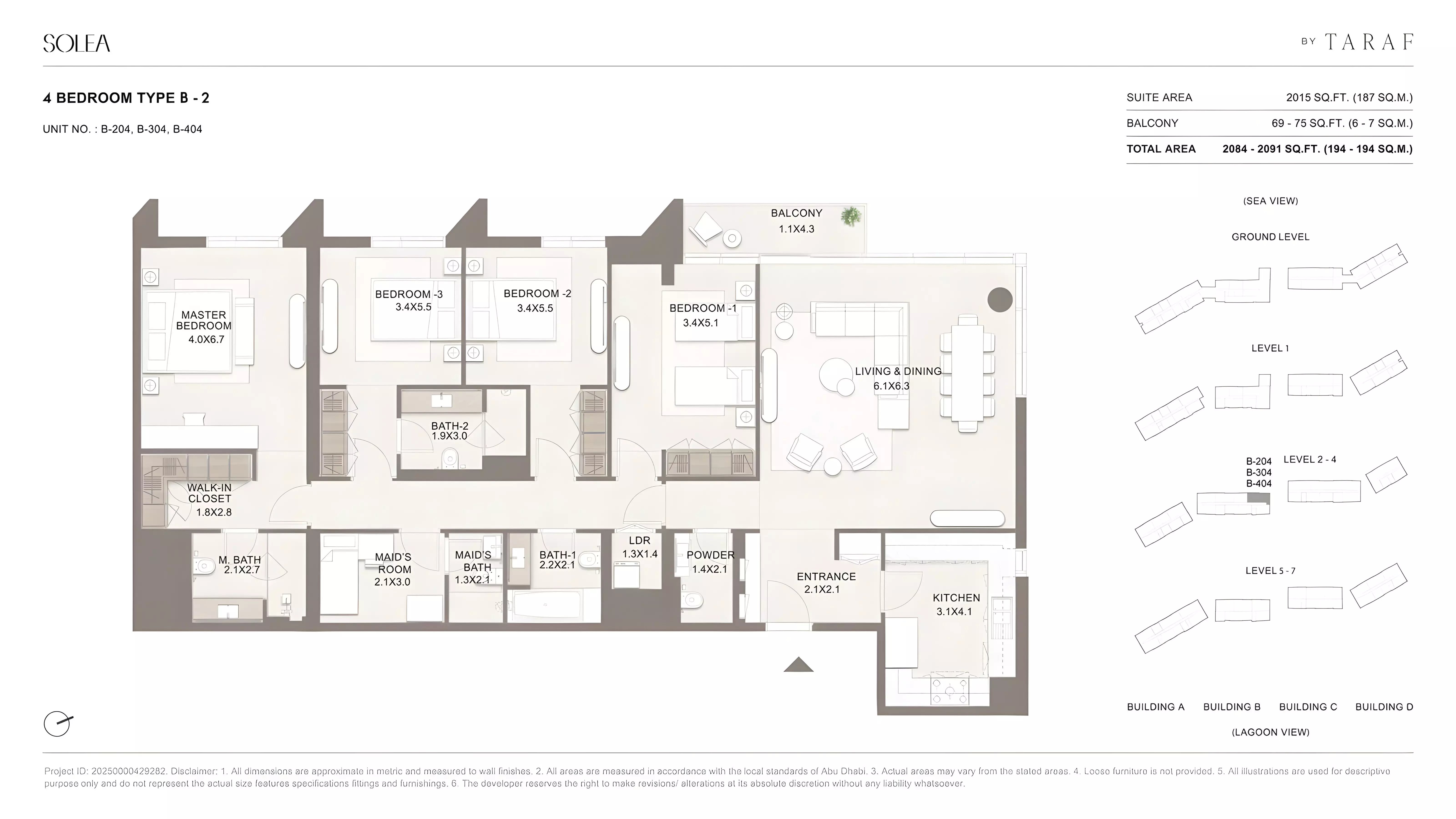 سولیا آپارتمانهای ۱ تا ۴ خوابه با متراژ از ۷۳۵ تا ۳,۰۳۹ فوت مربع ارائه میدهد که فضاهای زندگی لوکسی را برای راحتی و ظرافت طراحی کرده است.