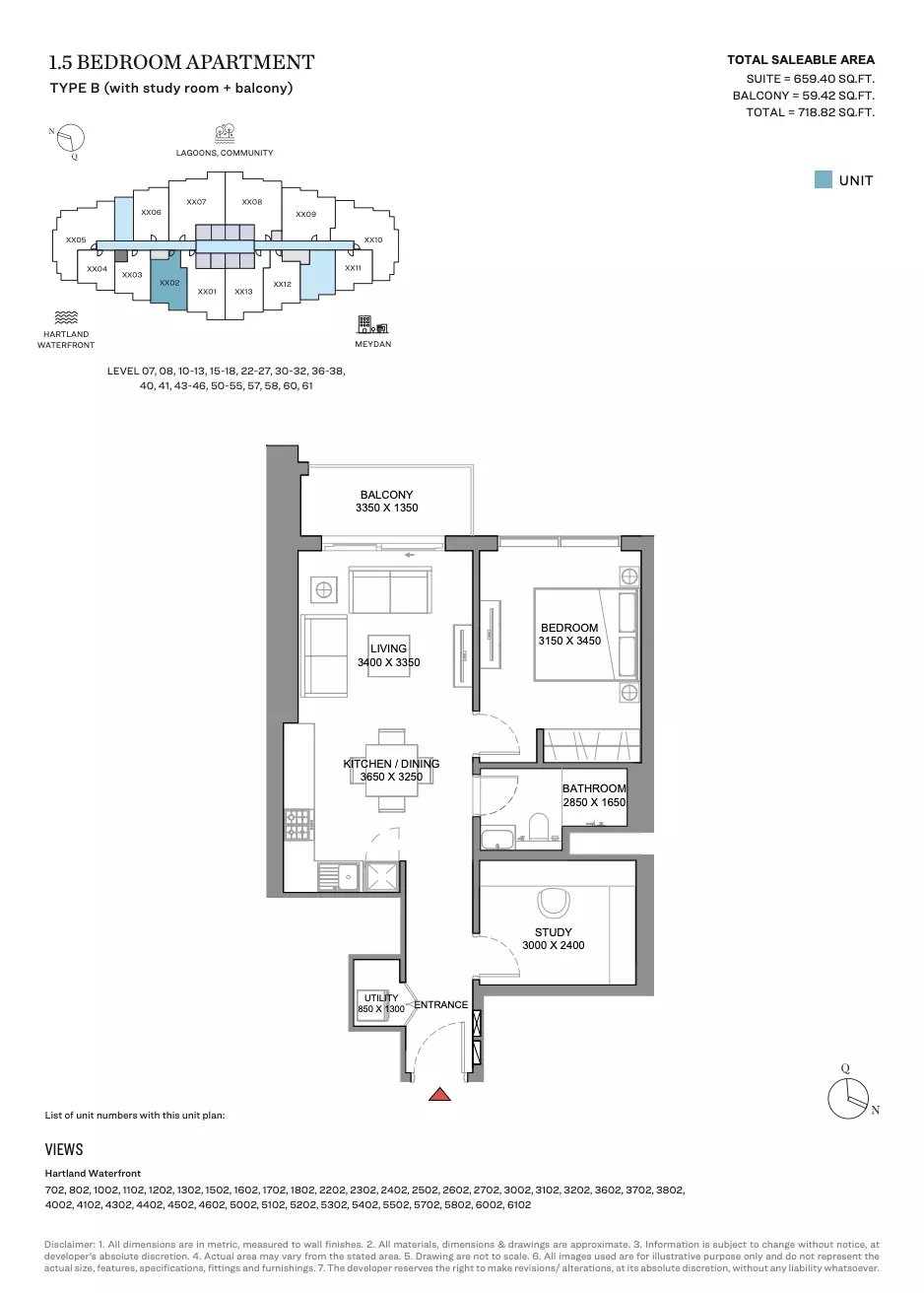 350 Riverside Crescent is a strong investment opportunity located in the prestigious Sobha Hartland 2 community. Its prime location, just minutes from Dubai Creek and the Design District, offers easy access to key landmarks and major roads, ensuring excellent connectivity. The development boasts luxury living with panoramic views of the lagoons and racecourse, providing an attractive environment for potential tenants and buyers. With the addition of a proposed Metro station nearby, 350 Riverside Crescent is well-positioned for long-term growth, making it a solid choice for investors seeking high capital appreciation and rental returns.