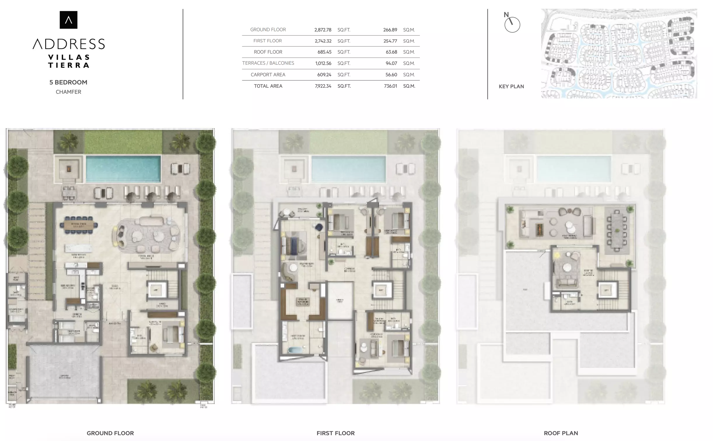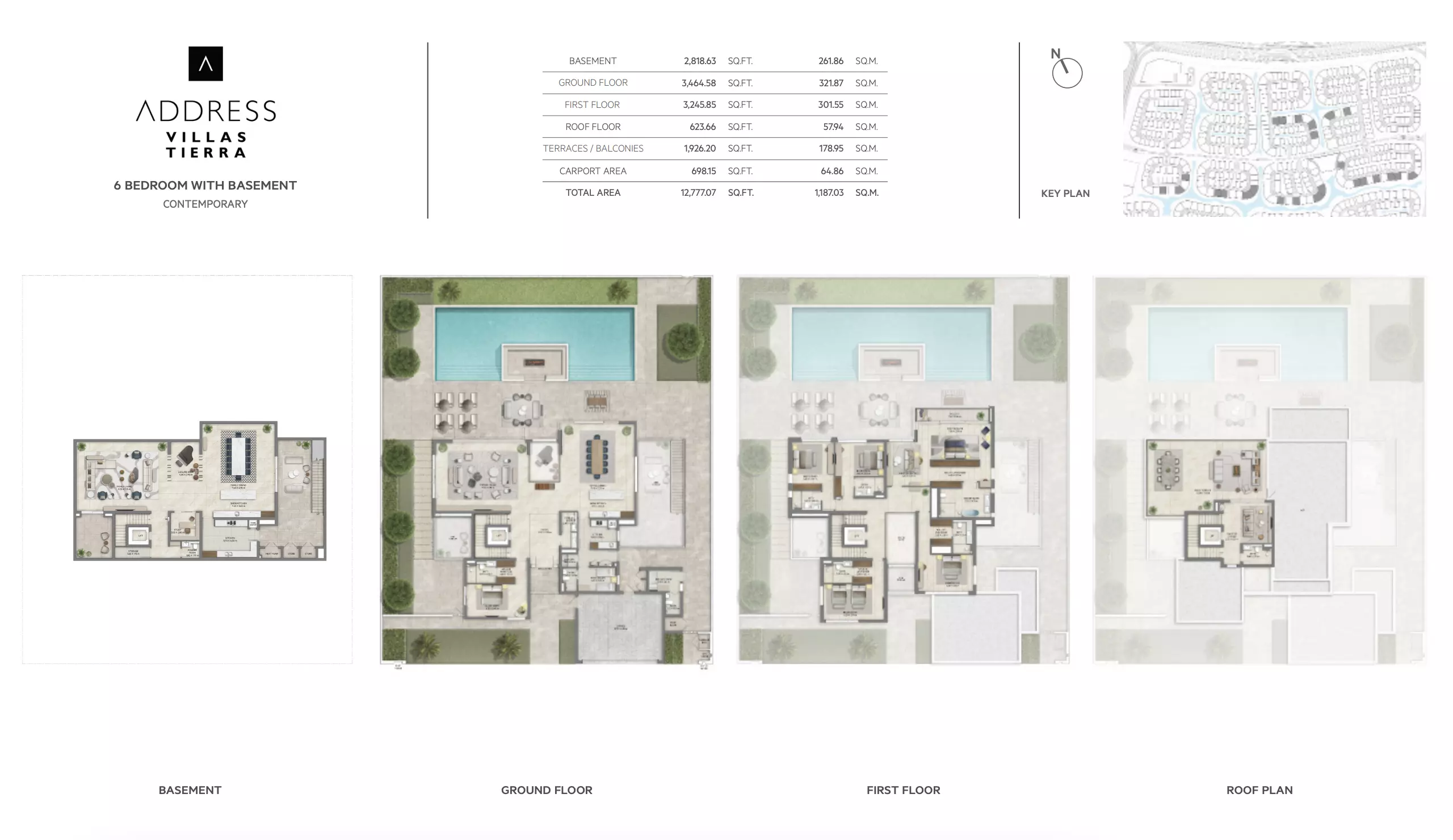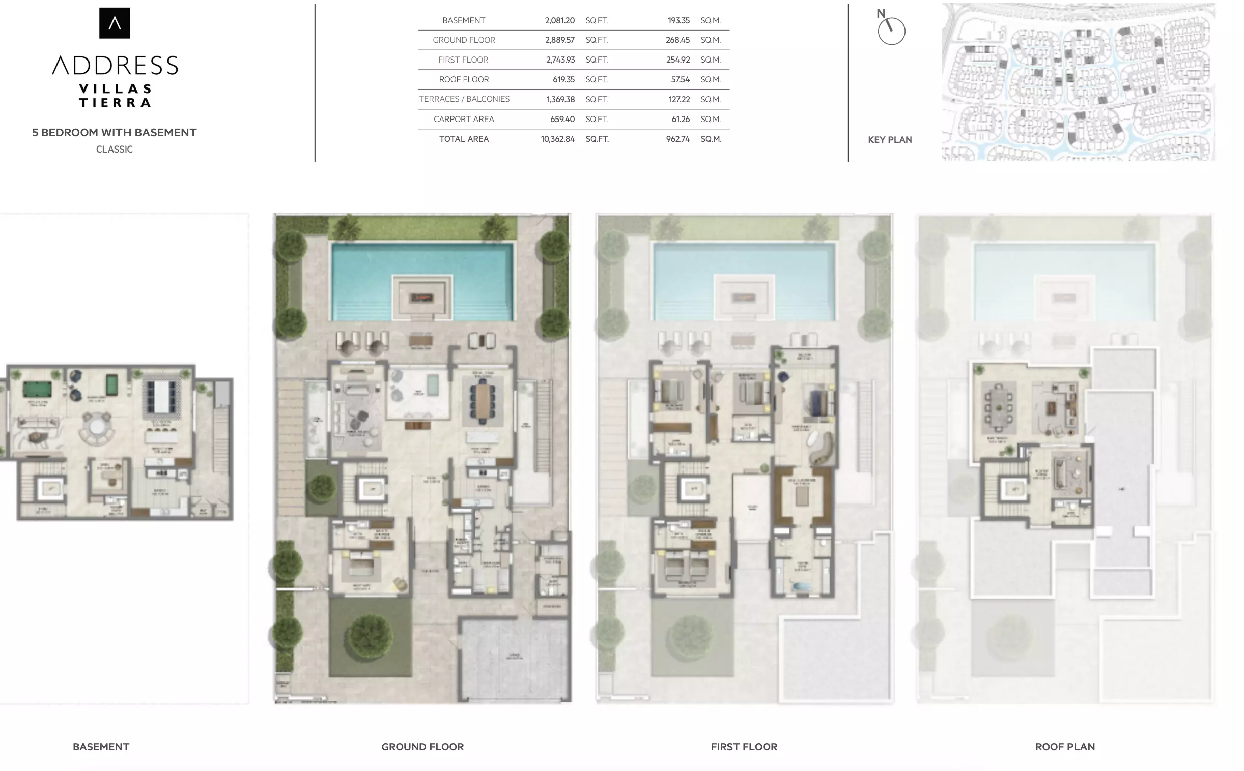 Address Villas Tierra offers luxurious villa options with varying sizes and prices: • 4-Bedroom Villas: Ranging from 7,268 to 7,301 sqft, with prices starting at 13M AED. • 5-Bedroom Villas: Ranging from 7,922 to 10,394 sqft, with prices starting at 14M AED. • 6-Bedroom Villas: Ranging from 12,777 to 12,958 sqft, with prices starting at 24M AED. These villas provide spacious living with high-end finishes, ideal for those seeking a premium, waterfront lifestyle within Dubai’s prestigious The Oasis development by Emaar.