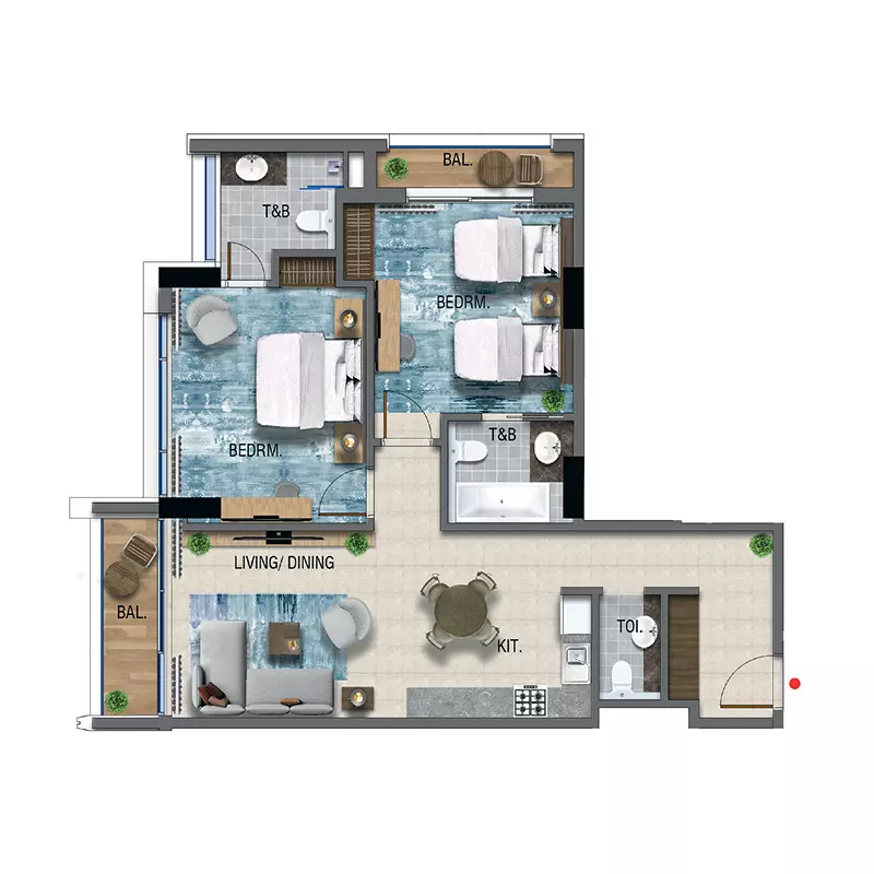 The development offers a variety of premium residences: Apartment Units: Studio: from AED 800K, 428 sqft 1-Bedroom: from AED 1.2M, 671 sqft 2-Bedroom: from AED 1.8M, 1001 sqft Duplex Unit: 3-Bedroom Duplex: 2467 sqft