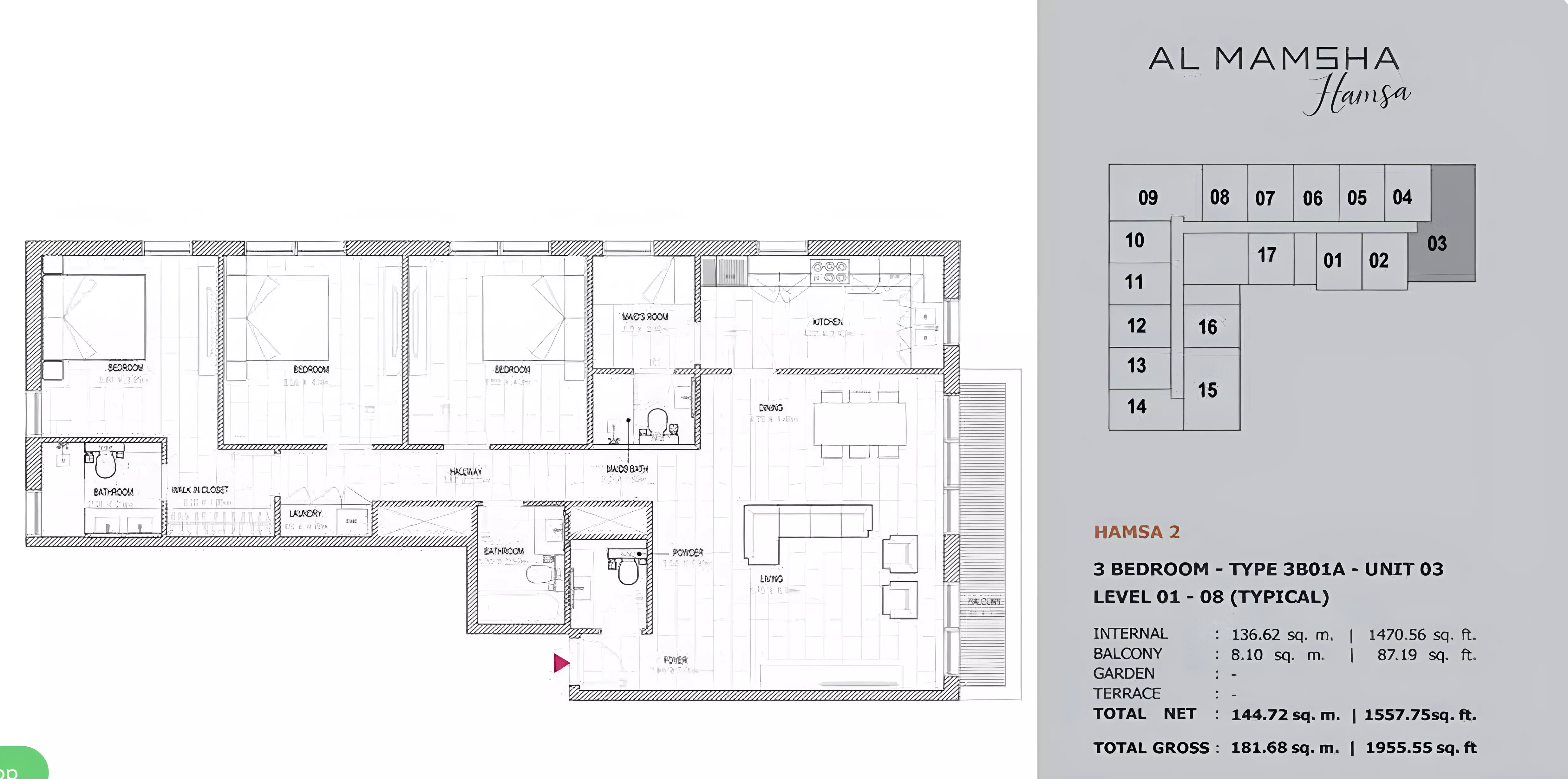 Al Mamsha Hamsa Phase 2 by Alef Group offers a range of apartment options designed to suit different living needs. The available housing units include 1-bedroom, 2-bedroom, and 3-bedroom apartments. The 1-bedroom apartments have a size of 677 square feet, offering an efficient layout ideal for singles or couples. The 2-bedroom units span 1,325 square feet, providing additional space for small families or professionals. For larger households, the 3-bedroom apartments offer a generous 1,955 square feet of living space. Each unit is thoughtfully designed with modern interiors, quality finishes, and open layouts to enhance comfort and functionality. These homes are located in a prime Sharjah community, delivering a combination of space, location, and quality construction. Pricing details are available upon request or through the official sales channels.