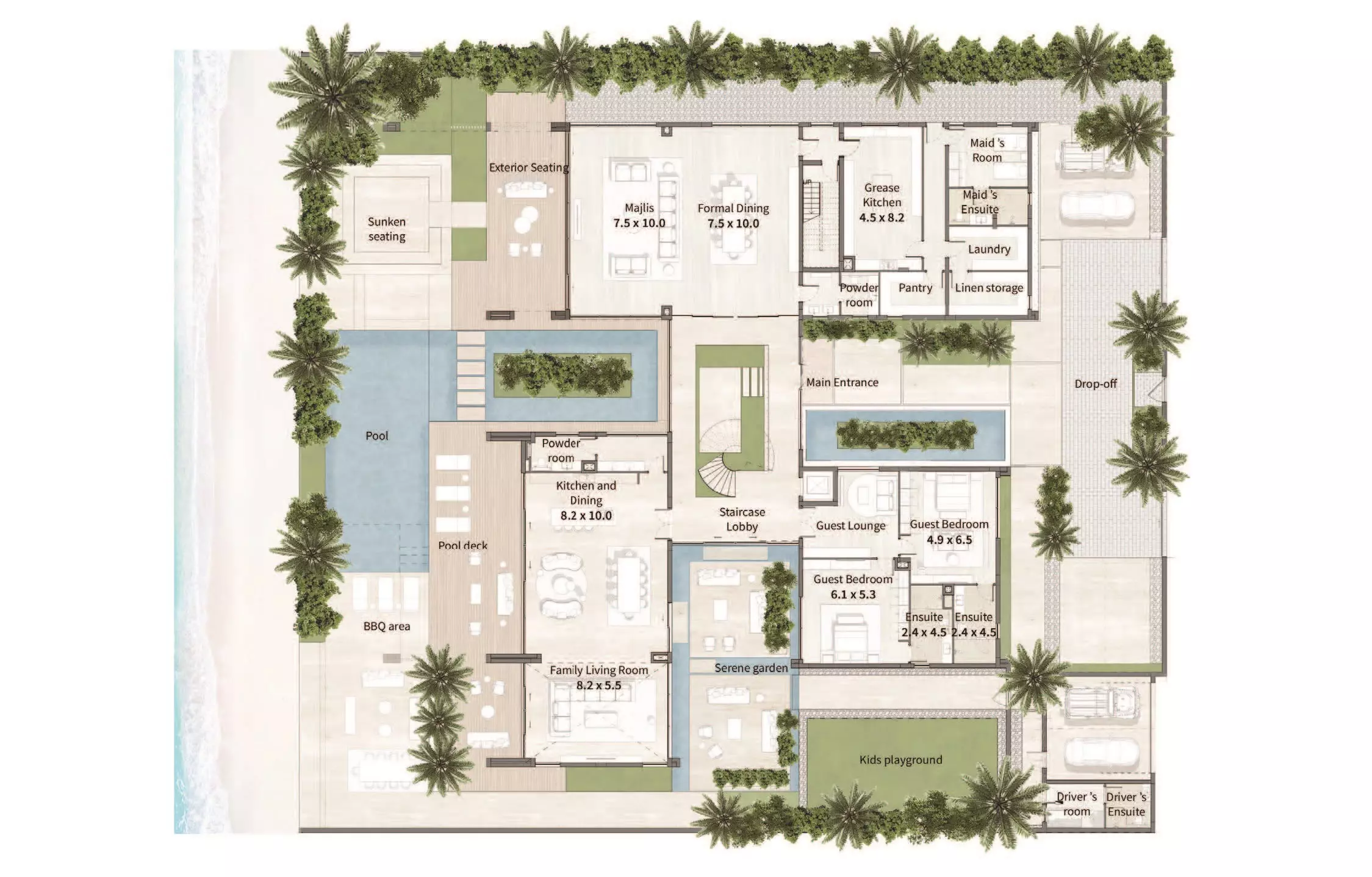Al Thuraya Island offers a selection of luxury villas designed for spacious and upscale living. The available housing options include 5-bedroom villas starting from AED 4.1 million, each offering approximately 6,596 square feet of built-up area. These villas provide ample space for families looking for comfort and privacy. For those seeking more room, 6-bedroom villas are available starting at AED 6.1 million, with sizes ranging between 7,159 and 7,167 square feet. The most expansive option is the 8-bedroom villas, priced from AED 12 million, with generous unit sizes ranging from 14,746 to 25,758 square feet. These homes are ideal for large families or buyers seeking premium island living with maximum space and exclusivity.