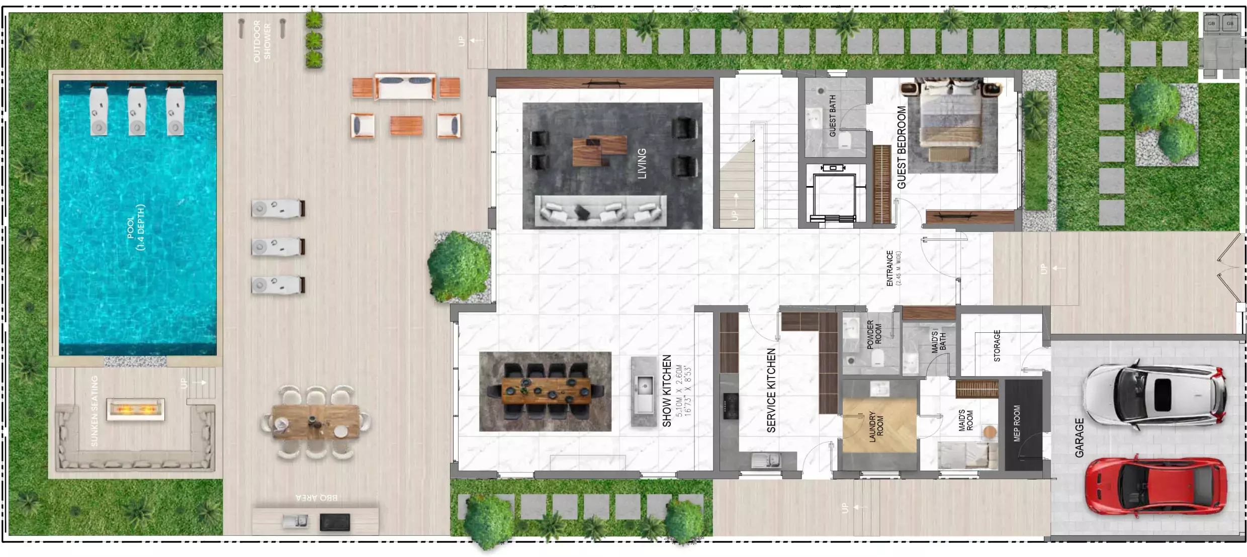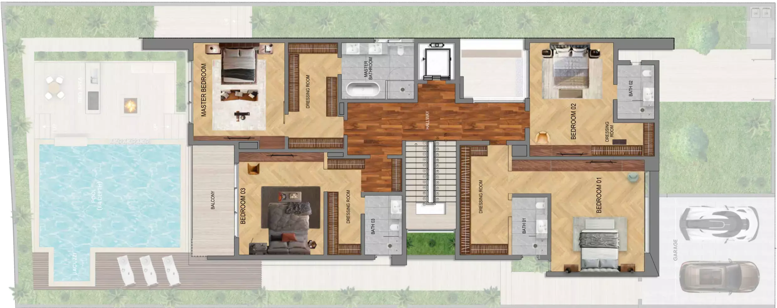 With four to five bedrooms, each type of villa has its own interior design and architectural features.