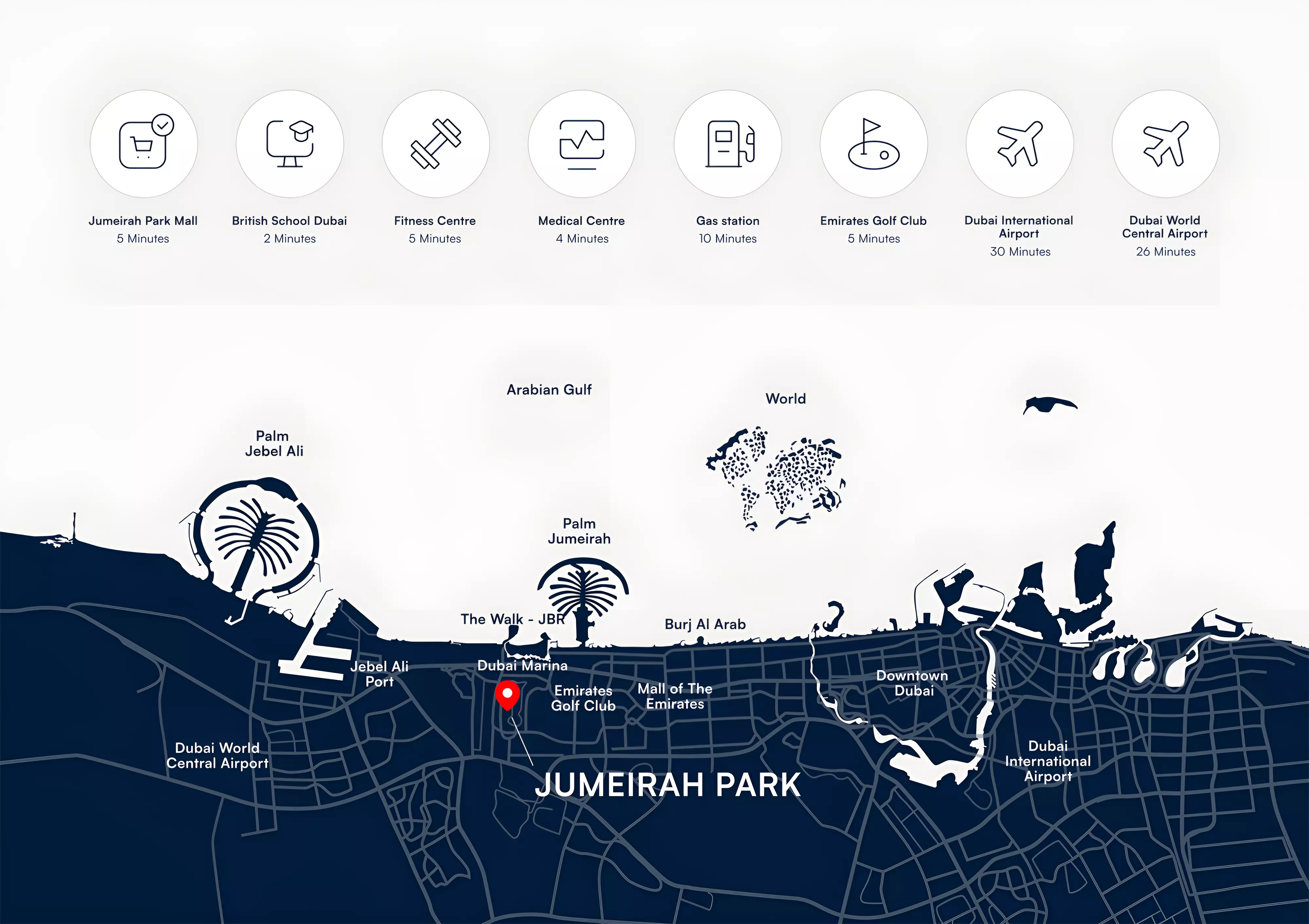 • 30 minutes to Al Maktoum International Airport