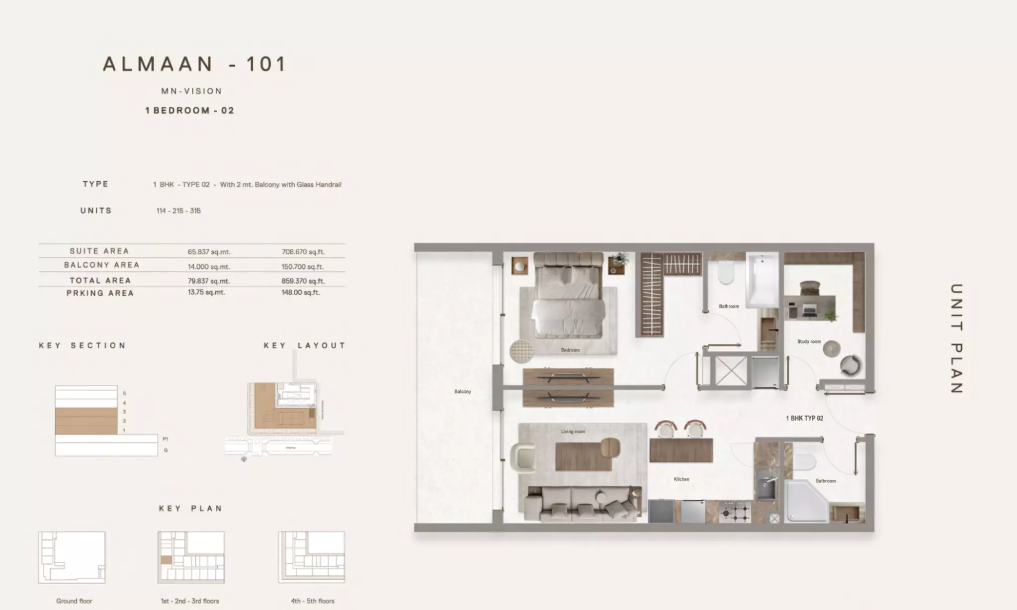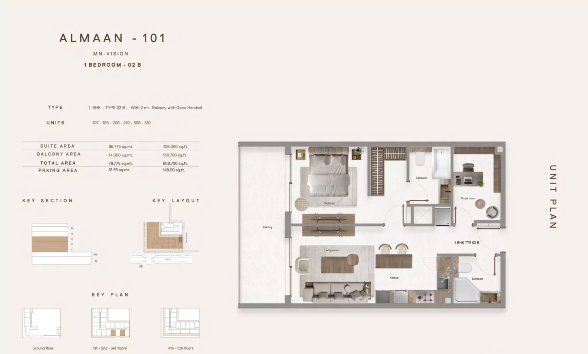 The payment plan for Almaan 101 is structured as follows: • 10% down payment is required at the time of the sales launch. • 50% is to be paid during the construction phase, divided over 5 installments. • 40% is due upon handover of the property. This plan allows buyers to distribute payments across the construction timeline, easing the financial commitment until final delivery.