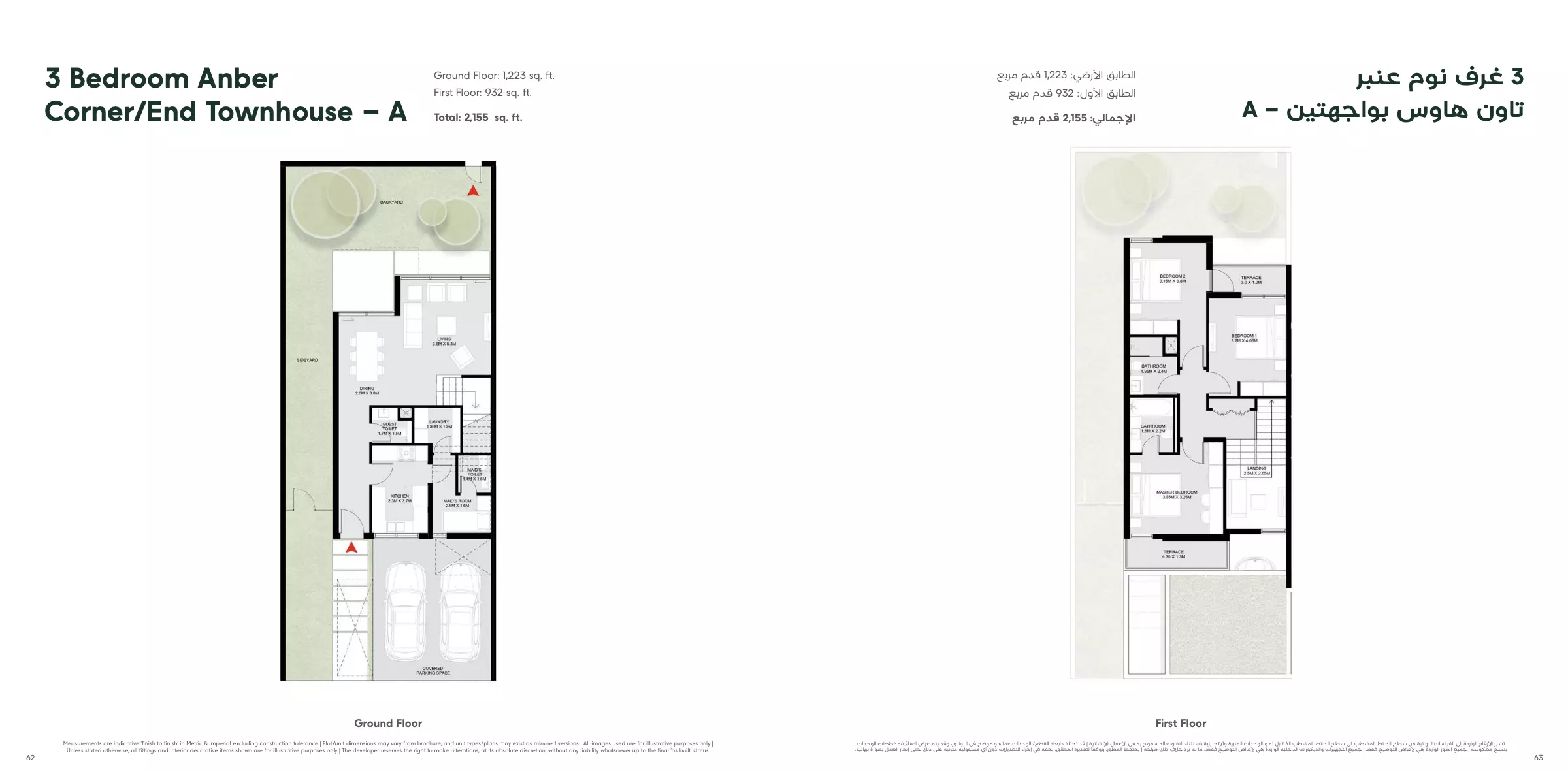 Anber offers a variety of housing options, including townhouses and villas, with different sizes and prices. The townhouse units include: • 2-bedroom: Sizes range from 1,856 sqft. • 3-bedroom: Sizes also range from 2,117 sqft to 2,155 sqft , with prices starting from 2,185,000 million AED. • 4-bedroom: Sizes range from 2,660 sqft, with prices starting from 3,031,000 million AED. For villas, the available options are: • 4-bedroom villa: Sized from 3,205 to 3,771 sqft, with prices starting from 3,977,000 million AED. • 5-bedroom villa: Sized from 4,686 to 5,878 sqft, with prices starting from 6,803,000 million AED. These units cater to different preferences, offering spacious living in a serene environment